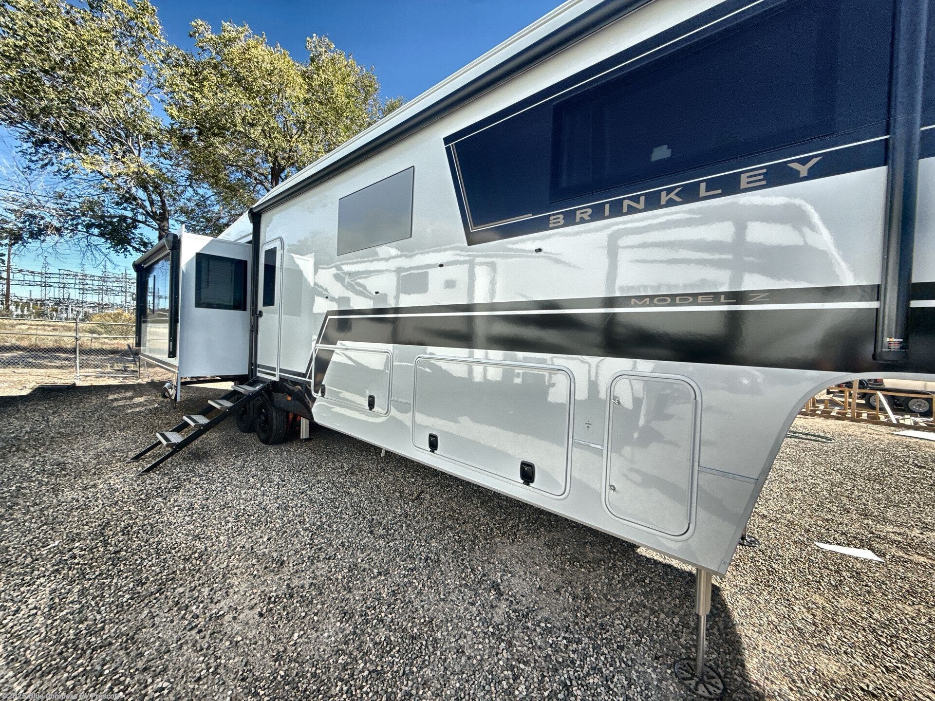 The Brinkley mid-profile Model Z fifth wheels bring you clean lines and an upscale look with plenty of style and exciting new features like the industry first brass plumbing connections. These units also feature an automotive grade front cap, plenty of exterior storage, dual exterior hot and cold showers, and wide stance leveling jacks for easy set up. Residential frameless windows provide a clean look and beautiful views, and ample electrical outlets and 6 USB/USB-C outlets allow all of your electronics and appliances to easily be used and charged.
