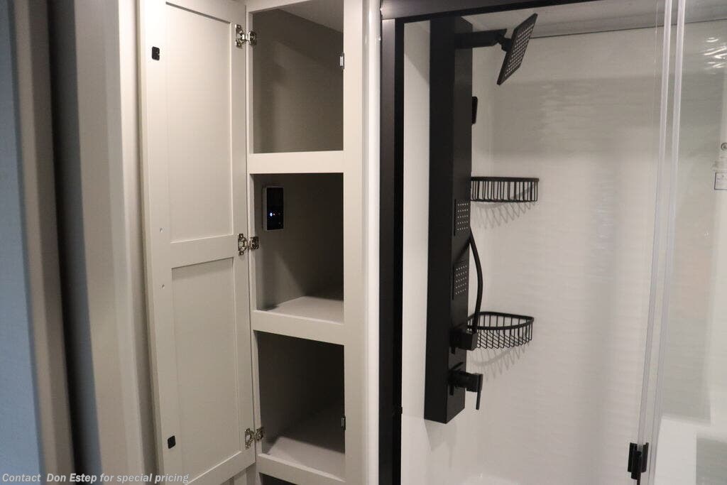 - Mid-Coach Pass-Through Storage Compartment w/ Motion Lighting & Power Outlets Storage Compartment (Heated & Insulated)