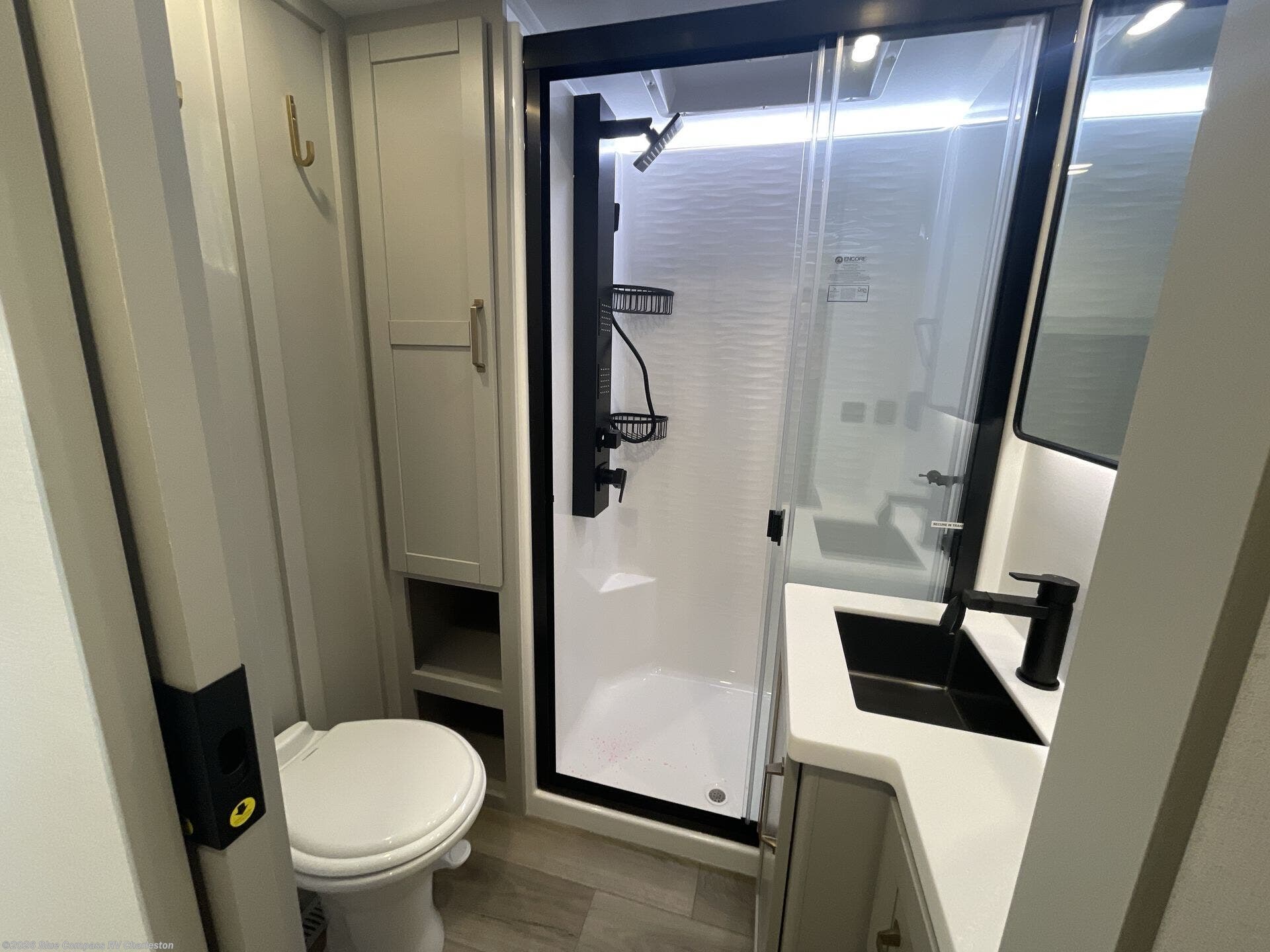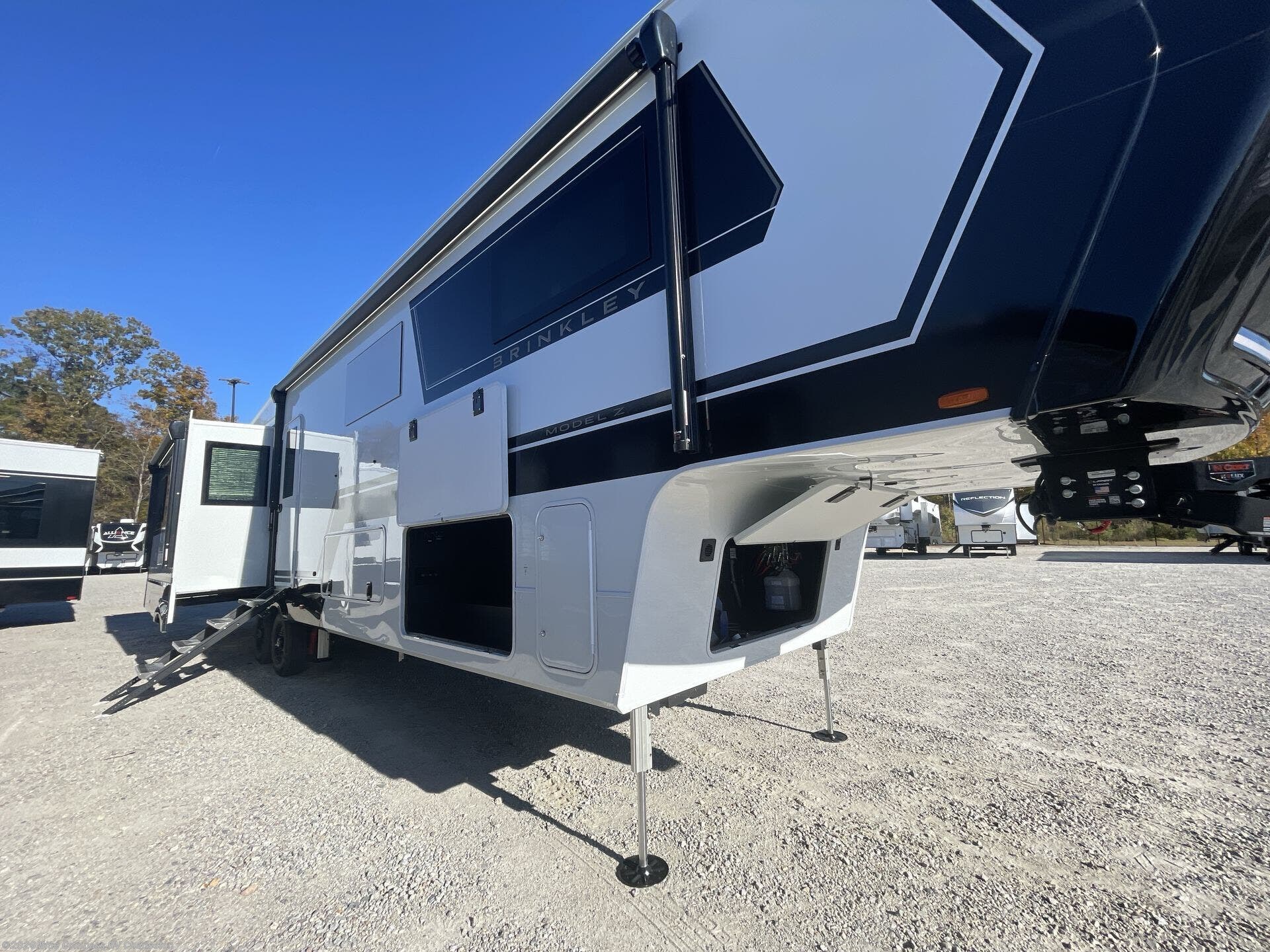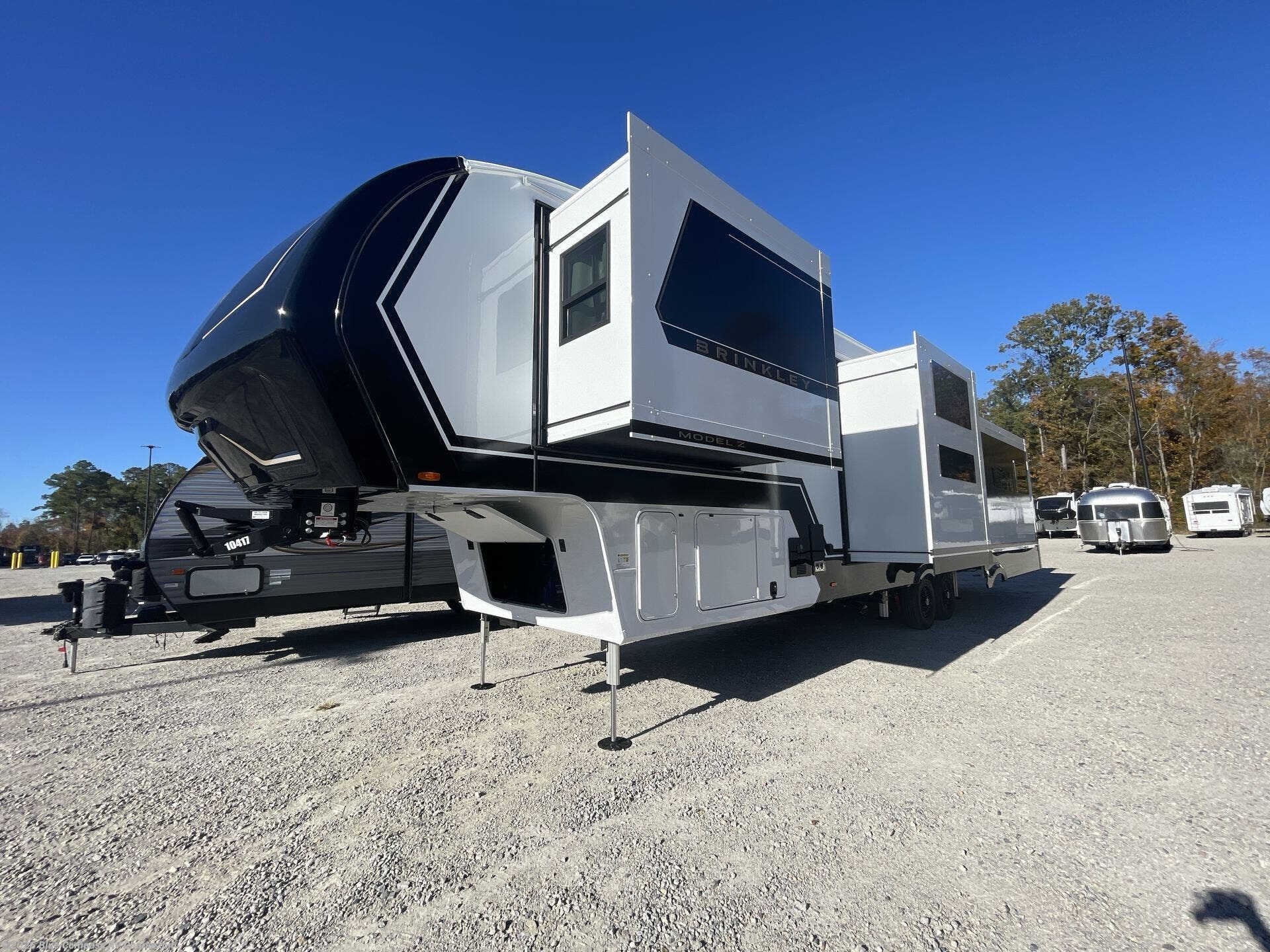 The Brinkley mid-profile Model Z fifth wheels bring you clean lines and an upscale look with plenty of style and exciting new features like the industry first brass plumbing connections. These units also feature an automotive grade front cap, plenty of exterior storage, dual exterior hot and cold showers, and wide stance leveling jacks for easy set up. Residential frameless windows provide a clean look and beautiful views, and ample electrical outlets and 6 USB/USB-C outlets allow all of your electronics and appliances to easily be used and charged.