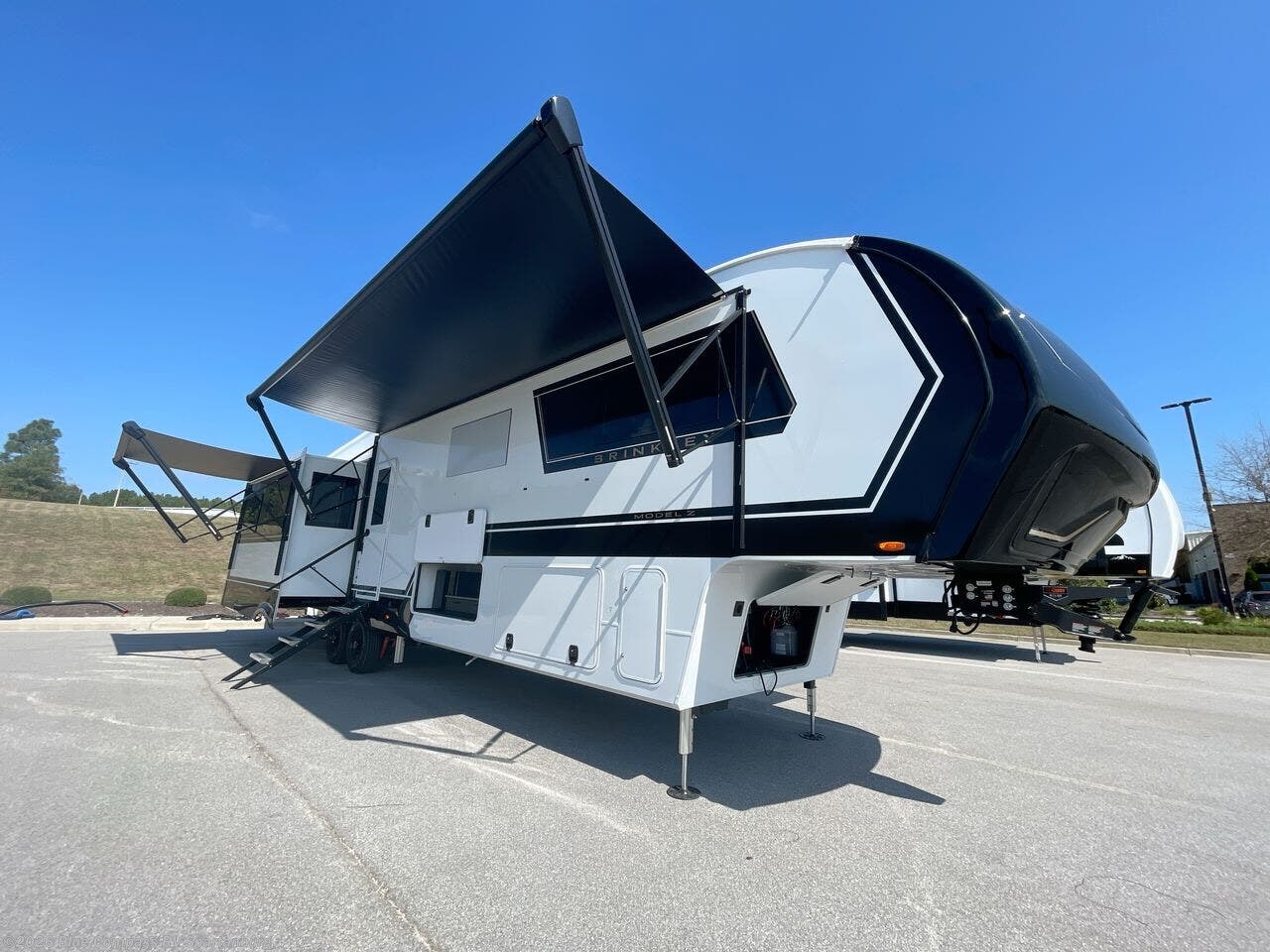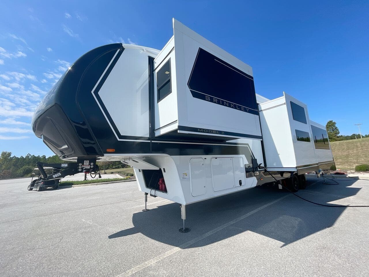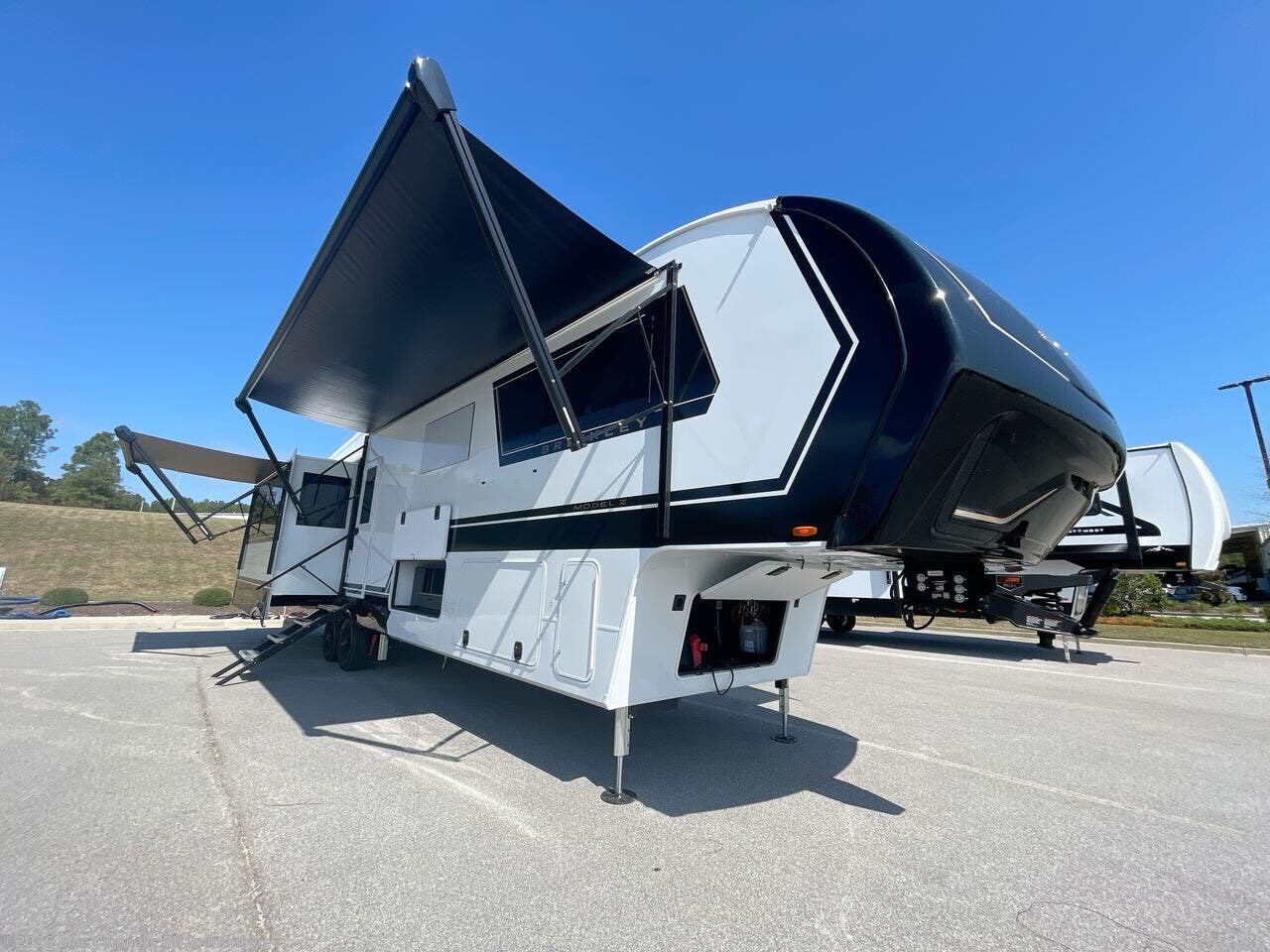 The Brinkley mid-profile Model Z fifth wheels bring you clean lines and an upscale look with plenty of style and exciting new features like the industry first brass plumbing connections. These units also feature an automotive grade front cap, plenty of exterior storage, dual exterior hot and cold showers, and wide stance leveling jacks for easy set up. Residential frameless windows provide a clean look and beautiful views, and ample electrical outlets and 6 USB/USB-C outlets allow all of your electronics and appliances to easily be used and charged.