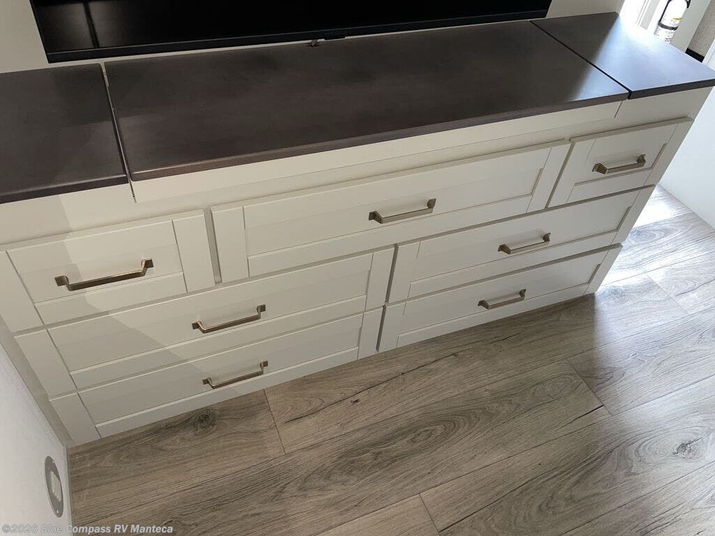 The Brinkley mid-profile Model Z fifth wheels bring you clean lines and an upscale look with plenty of style and exciting new features like the industry first brass plumbing connections. These units also feature an automotive grade front cap, plenty of exterior storage, dual exterior hot and cold showers, and wide stance leveling jacks for easy set up. Residential frameless windows provide a clean look and beautiful views, and ample electrical outlets and 6 USB/USB-C outlets allow all of your electronics and appliances to easily be used and charged.