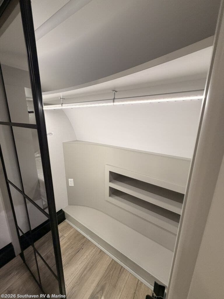 - Mid-Coach Pass-Through Storage Compartment w/ Motion Lighting & Power Outlets Storage Compartment (Heated & Insulated)