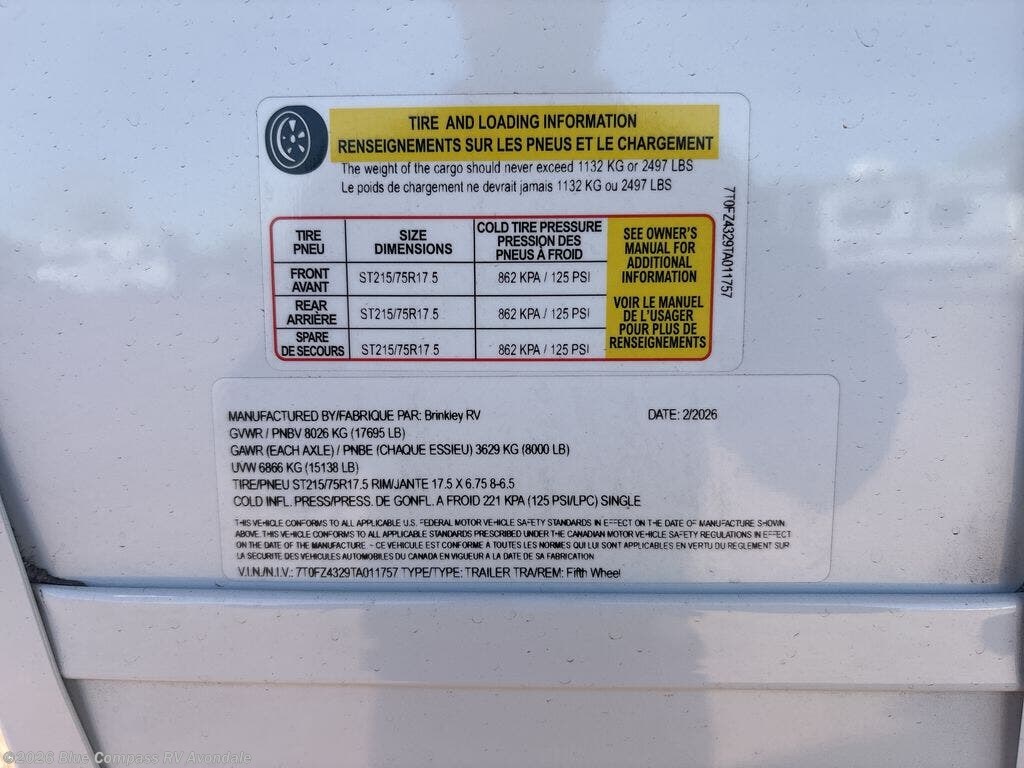2026 Brinkley RV Model Z 3610 Specifications