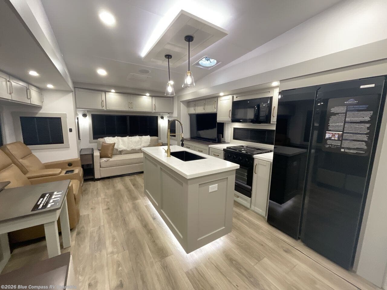The Brinkley mid-profile Model Z fifth wheels bring you clean lines and an upscale look with plenty of style and exciting new features like the industry first brass plumbing connections. These units also feature an automotive grade front cap, plenty of exterior storage, dual exterior hot and cold showers, and wide stance leveling jacks for easy set up. Residential frameless windows provide a clean look and beautiful views, and ample electrical outlets and 6 USB/USB-C outlets allow all of your electronics and appliances to easily be used and charged.