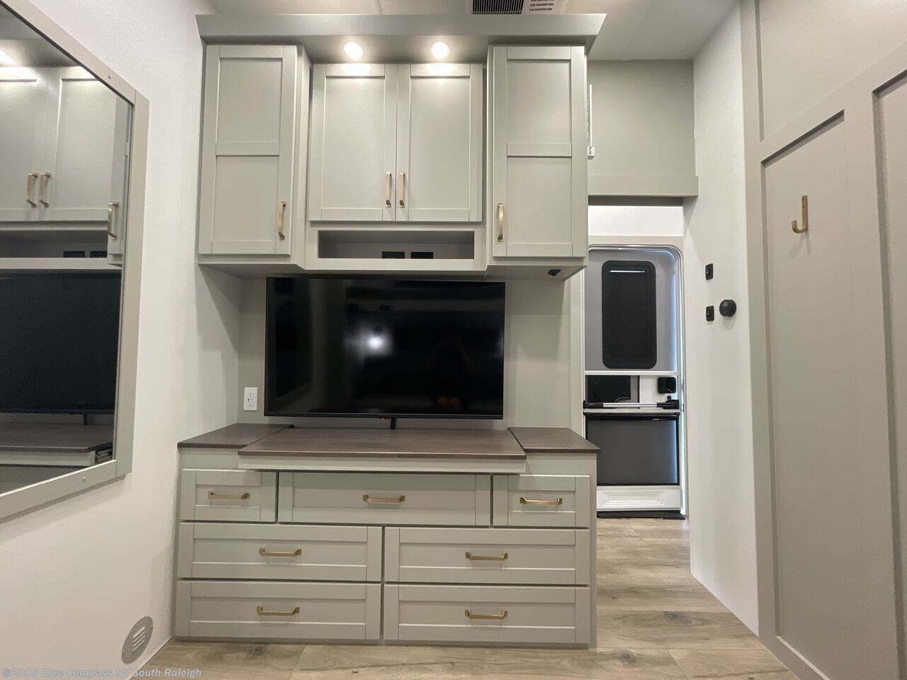 The Brinkley mid-profile Model Z fifth wheels bring you clean lines and an upscale look with plenty of style and exciting new features like the industry first brass plumbing connections. These units also feature an automotive grade front cap, plenty of exterior storage, dual exterior hot and cold showers, and wide stance leveling jacks for easy set up. Residential frameless windows provide a clean look and beautiful views, and ample electrical outlets and 6 USB/USB-C outlets allow all of your electronics and appliances to easily be used and charged.