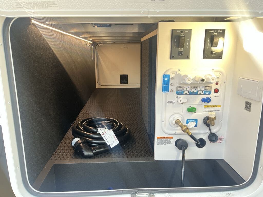 With any Model Z Air travel trailer by Brinkley, you will enjoy premium features at every turn. The industry-first low maintenance roof is sure to be appreciated, plus there are industry-first brass plumbing connections for excellent resistance to corrosion. The drop-frame chassis with ample exterior storage will allow you to bring along camp gear galore, plus there are motion lighting and power outlets for added convenience! You'll also find two hot/cold showers outdoors, along with a 370-watt solar panel, a custom LP box with locked battery storage, and a premium utility center with a retractable 65' water hose to wash off mud from the lake. The interior is just as accommodating with its solid surface countertops, Brinkley CraftSense wood trim construction, integrated window screens and insulated blackout blinds, and the list of luxury features goes on!