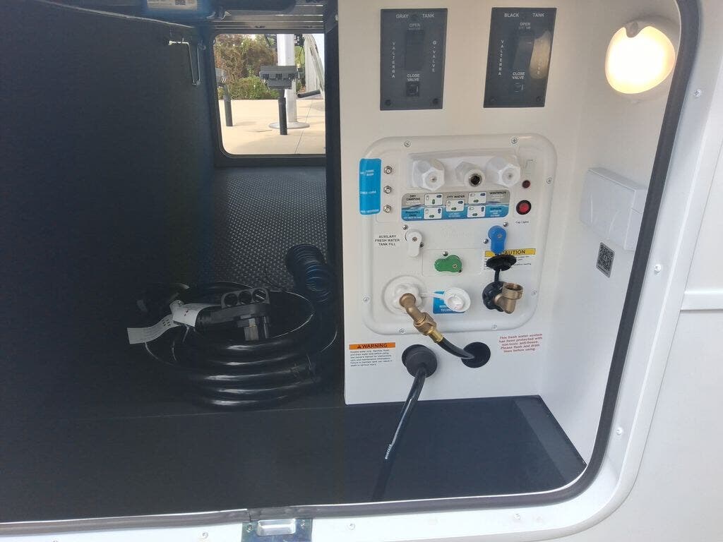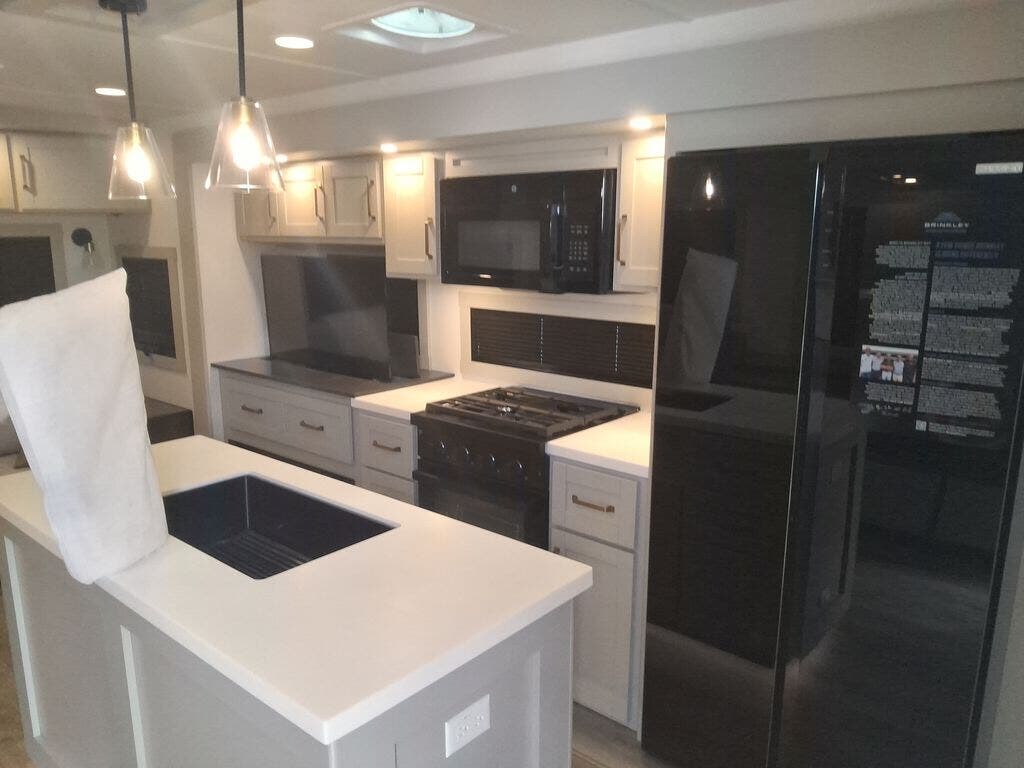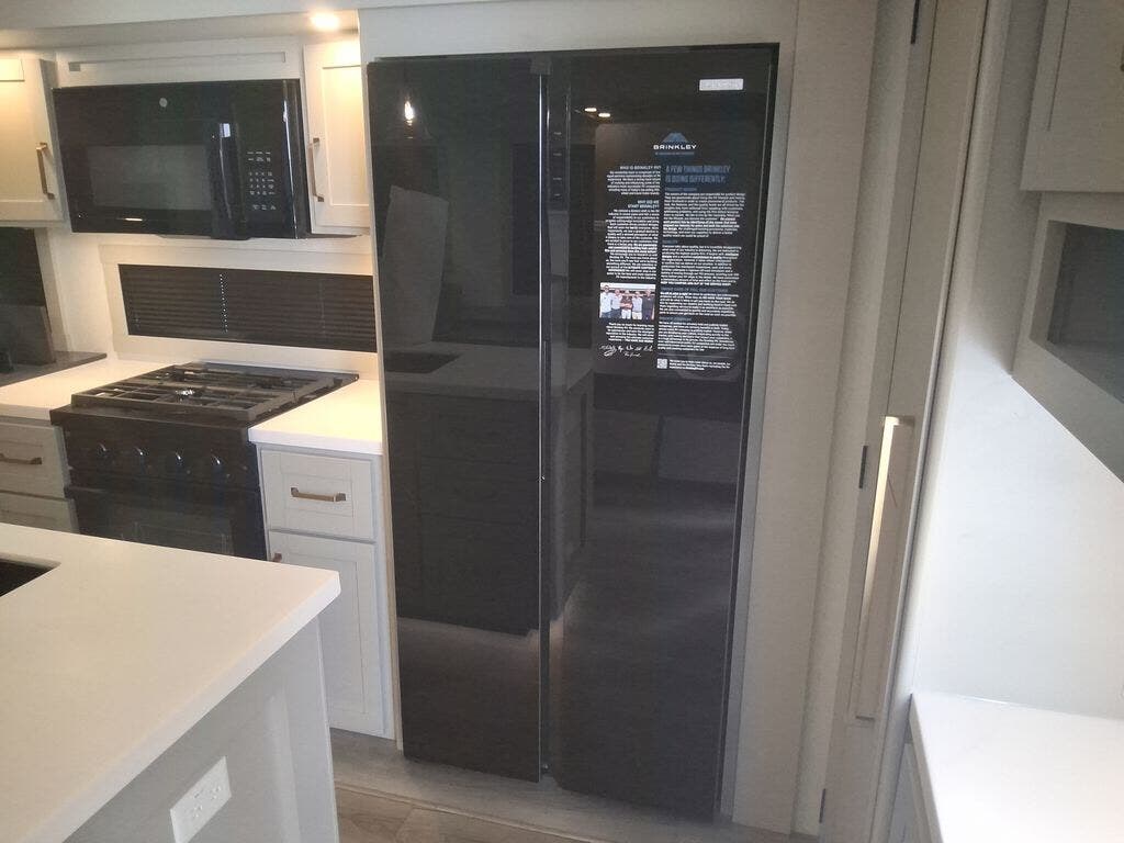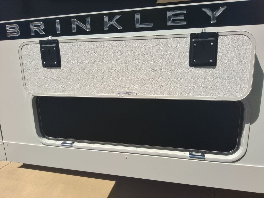 With any Model Z Air travel trailer by Brinkley, you will enjoy premium features at every turn. The industry-first low maintenance roof is sure to be appreciated, plus there are industry-first brass plumbing connections for excellent resistance to corrosion. The drop-frame chassis with over 100 cu. ft. of exterior storage will allow you to bring along camp gear galore, plus there are motion lighting and power outlets for added convenience! You'll also find two hot/cold showers outdoors, along with a 370-watt solar panel, a custom LP box with locked battery storage, and a premium utility center with a retractable 65' water hose to wash off mud from the lake. The interior is just as accommodating with its solid surface countertops, Brinkley CraftSense wood trim construction, integrated window screens and insulated blackout blinds, and the list of luxury features goes on!
