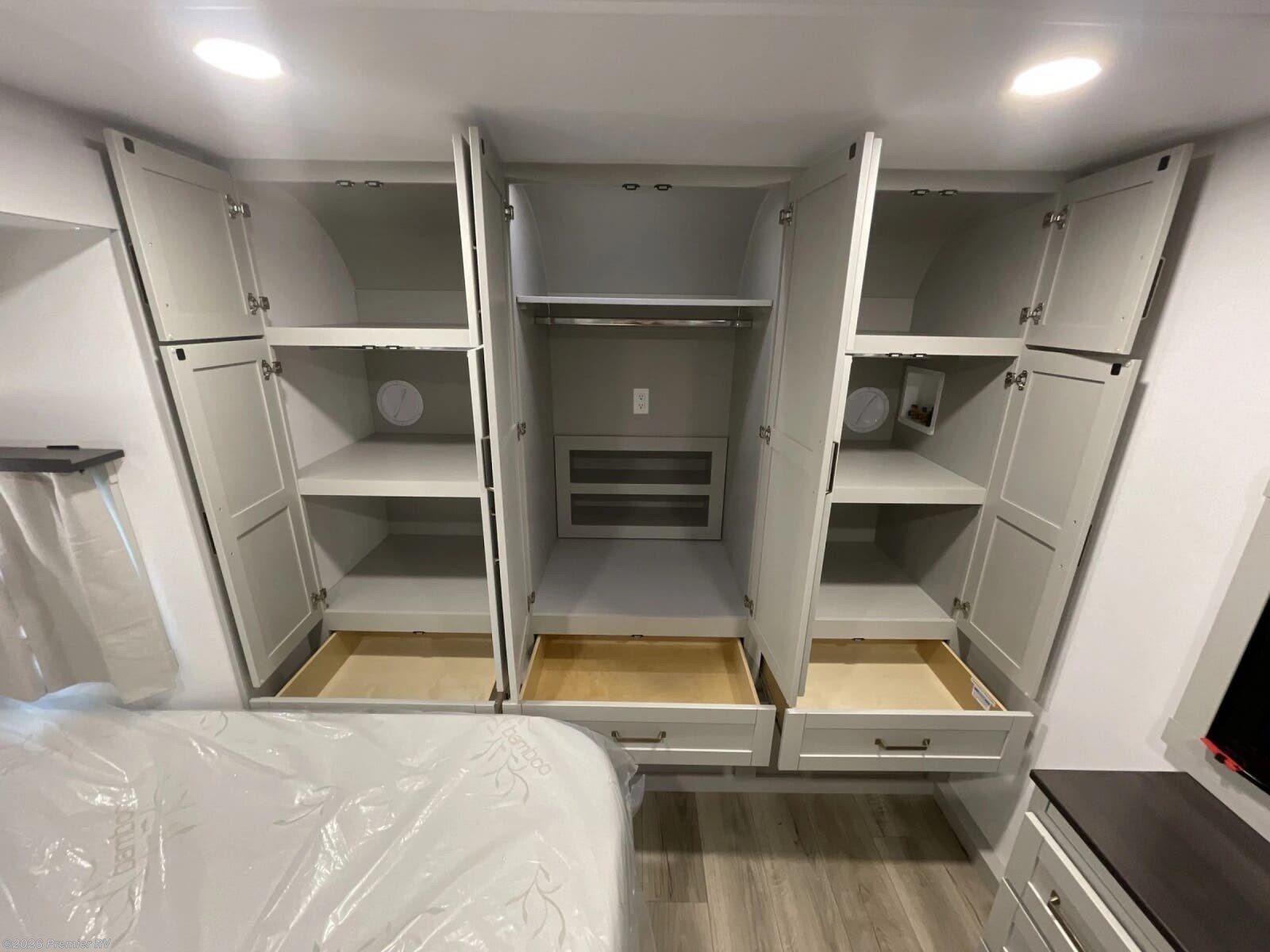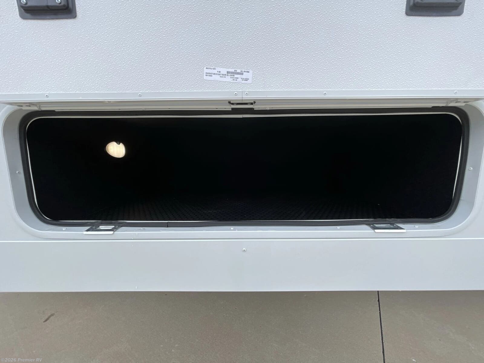 - DROP FRAME CHASSIS W/ OVER 100 CUBIC FEET OF EXTERIOR STORAGE (ACCESSIBLE CAMPSIDE) W/ MOTION LIGHTING & POWER OUTLETS