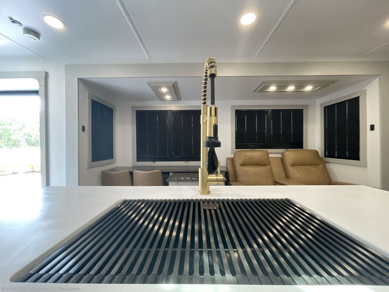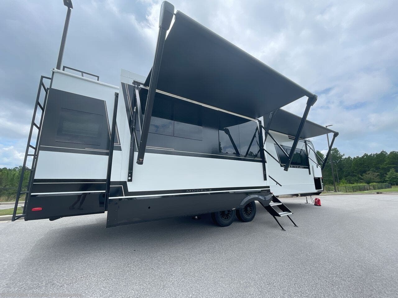 With any Model Z Air travel trailer by Brinkley, you will enjoy premium features at every turn. The industry-first low maintenance roof is sure to be appreciated, plus there are industry-first brass plumbing connections for excellent resistance to corrosion. The drop-frame chassis with over 100 cu. ft. of exterior storage will allow you to bring along camp gear galore, plus there are motion lighting and power outlets for added convenience! You'll also find two hot/cold showers outdoors, along with a 370-watt solar panel, a custom LP box with locked battery storage, and a premium utility center with a retractable 65' water hose to wash off mud from the lake. The interior is just as accommodating with its solid surface countertops, Brinkley CraftSense wood trim construction, integrated window screens and insulated blackout blinds, and the list of luxury features goes on!