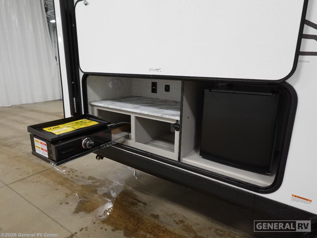 Discover the 2026 Coachmen Apex Nano 186BH, a compact yet spacious travel companion designed for families and adventurers alike. With its thoughtful layout, this RV comfortably sleeps up to seven, featuring two double beds and a convertible sleeping area. The clever use of space includes a Murphy bed that transforms the front living area into a cozy lounge by day and a restful retreat by night. The center kitchen is equipped with a two-burner cooktop and a mid-size electric refrigerator, making meal prep a breeze, whether you’re whipping up a quick breakfast or a gourmet dinner under the 15-foot powered retractable awning. The rear of the RV hosts a convenient bath area with a tub shower, ensuring you have all the comforts of home on the road. The exterior camp kitchen adds an extra touch of convenience, perfect for those who love cooking outdoors. With ample storage options, including pass-thru storage, you can bring along all your essentials. The Apex Nano 186BH is lightweight yet robust, with a dry weight of just 3,626 pounds, making it easy to tow without compromising on features or comfort. Experience the perfect blend of adventure and relaxation in this versatile travel trailer. For more information, visit your nearest General RV dealership.
