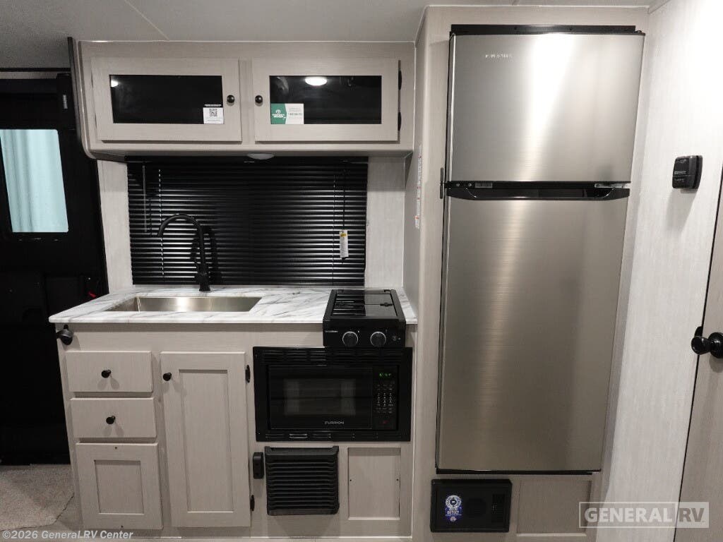 Experience the perfect blend of comfort and adventure with the 2026 Coachmen Apex Nano 203RBK. This compact yet spacious travel trailer is designed for those who seek the thrill of the open road without sacrificing the comforts of home. At just over 23 feet in length, this RV is packed with features that make it an ideal choice for couples or small families. The inviting queen-sized Murphy bed transforms the living area by day, while the convertible dinette offers additional sleeping space for guests. With a center kitchen and living area, you'll find a well-equipped space featuring a two-burner cooktop and a mid-size electric refrigerator, perfect for whipping up delicious meals on the go. The Apex Nano 203RBK's thoughtful design continues with its rear bath, offering privacy and convenience with a shower and curtain enclosure. Enjoy outdoor living under the 15-foot powered retractable awning, and make use of the exterior kitchen for alfresco dining. With ample storage, including pass-thru compartments, you can bring along all your adventure essentials. Whether you're setting up camp in the mountains or by the beach, this RV is ready to make your travels unforgettable. For more details or to see this model in person, visit your nearest General RV dealership.