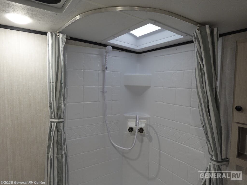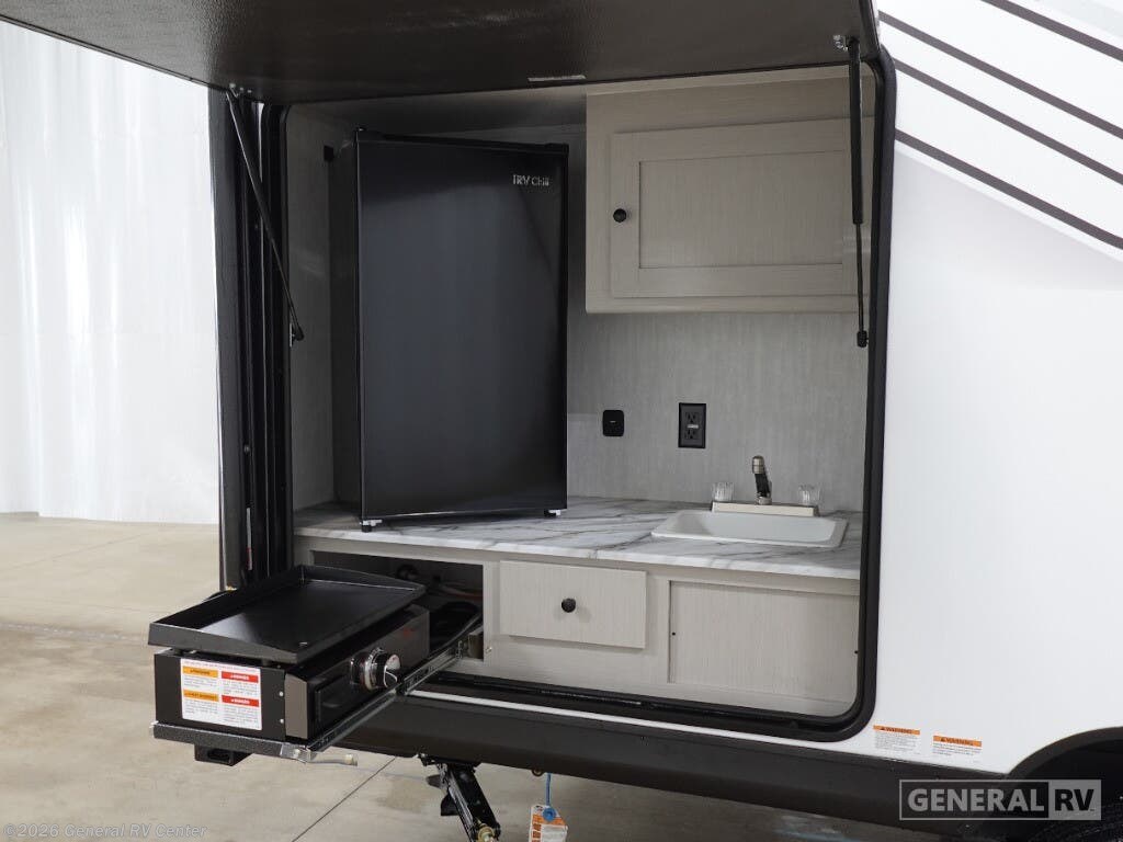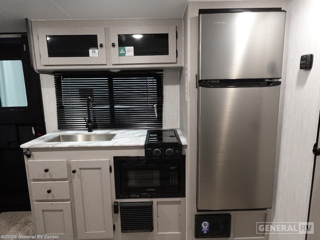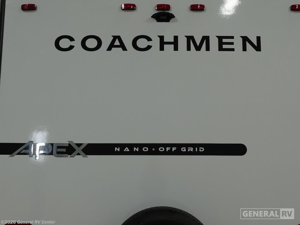 Experience the perfect blend of comfort and adventure with the 2026 Coachmen Apex Nano 203RBK. This compact yet spacious travel trailer is designed for those who seek the thrill of the open road without sacrificing the comforts of home. At just over 23 feet in length, this RV is packed with features that make it an ideal choice for couples or small families. The inviting queen-sized Murphy bed transforms the living area by day, while the convertible dinette offers additional sleeping space for guests. With a center kitchen and living area, you'll find a well-equipped space featuring a two-burner cooktop and a mid-size electric refrigerator, perfect for whipping up delicious meals on the go. The Apex Nano 203RBK's thoughtful design continues with its rear bath, offering privacy and convenience with a shower and curtain enclosure. Enjoy outdoor living under the 15-foot powered retractable awning, and make use of the exterior kitchen for alfresco dining. With ample storage, including pass-thru compartments, you can bring along all your adventure essentials. Whether you're setting up camp in the mountains or by the beach, this RV is ready to make your travels unforgettable. For more details or to see this model in person, visit your nearest General RV dealership.