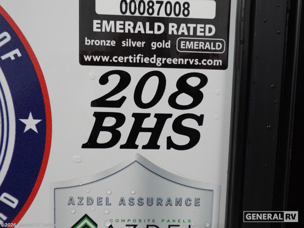 **Coachmen RV Apex Nano travel trailer 208BHS highlights:** Front Queen Bed Booth Dinette Slide Rear Corner Bathroom Exterior Camp Kitchen Pass-Through Storage You and a few friends or family members can camp comfortably in this travel trailer! Two others can sleep on the rear corner upper double bed and lower flip up double bed. After you have fried up some eggs on the two burner cooktop and heated up a piece of banana bread in the microwave, you can head to the booth dinette slide to enjoy it. There is even a pantry to store your coffee grounds and snacks. Now that your bellies are full, you can freshen up in the rear corner bathroom with the tub/shower. You will find comfort, convenience, and a sturdy construction with each of these Coachmen RV Apex Nano travel trailers! They are held together with an aluma-cage construction, an I-beam chassis, plus vacuum-bonded laminated dual Azdel fiberglass walls for double the protection against the elements. The 200-watt solar panel with a 30 amp control charger is included within the Off-Grid Package, along with two 20 lb. LP tanks, a high velocity power roof vent, plus 12V outlets to keep you powered up. More exterior feature include a hot/cold shower, four stabilizer jacks, a power awning with LED lighting, and magnetic baggage door catches to easily pack and unload your gear. You will love the interior of your Apex Nano with Congoleum residential flooring, one-piece seamless edge countertops, matte black hardware in the galley, and a hand-crafted wood medicine cabinet in the bath.