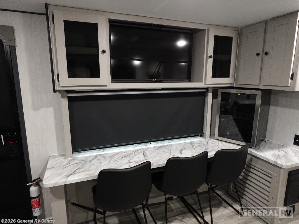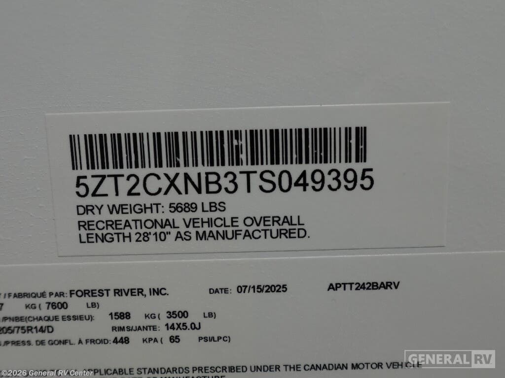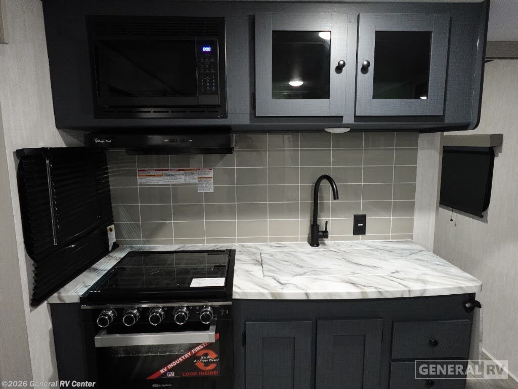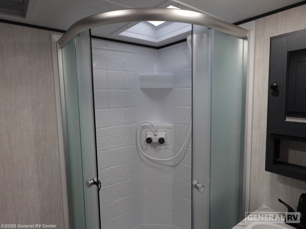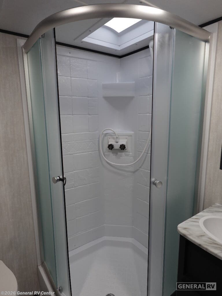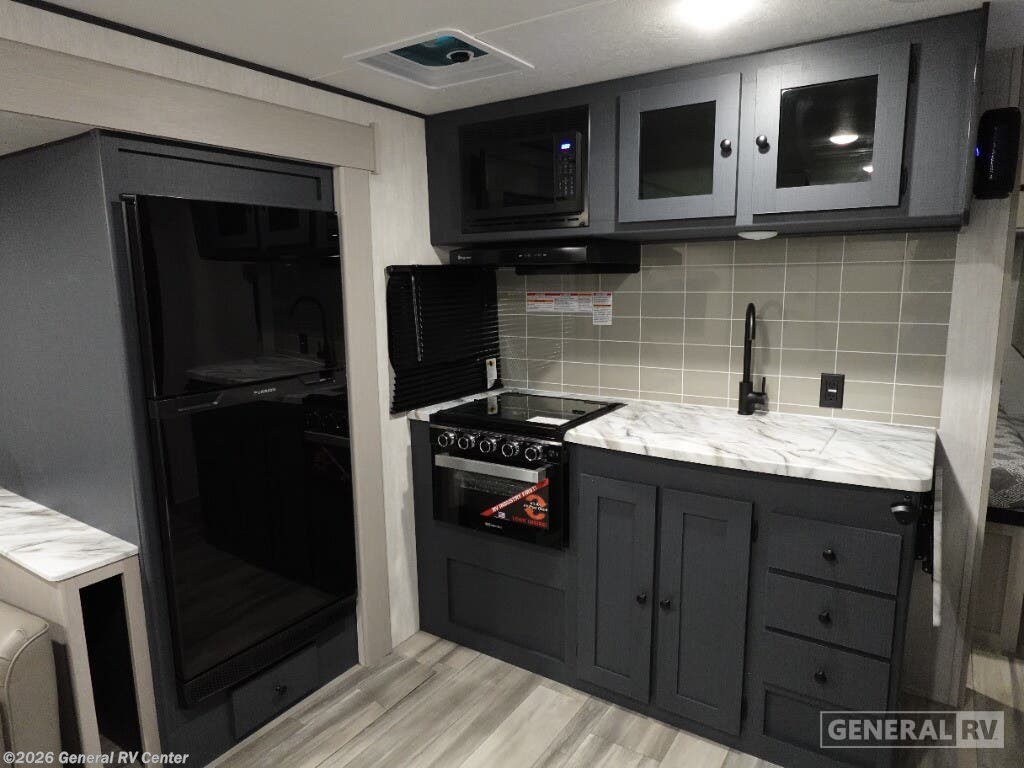 Experience the perfect blend of comfort and convenience with the 2026 Coachmen Apex Ultra-Lite 242BARV. This travel trailer is designed for those who seek adventure without compromising on modern amenities. With a length of just under 29 feet, it offers a spacious yet cozy environment, perfect for a family of four. The front bedroom features a luxurious queen bed with ample storage, ensuring restful nights under the stars. The center living area invites relaxation with its 68" tri-fold sofa, ideal for lounging or converting into an extra sleeping space. The heart of this RV is its well-appointed center kitchen, complete with a bar countertop and stools, making it a delightful spot for meals and gatherings. The kitchen is equipped with a mid-size electric refrigerator and a three-burner cooktop, offering all the comforts of home cooking. The rear bath provides privacy and convenience, featuring a 34" corner shower with a sleek plastic and glass design. Outside, enjoy the 16-foot powered retractable awning, perfect for extending your living space into the great outdoors. With a cargo capacity of 1828 pounds, you'll have plenty of room for all your gear and essentials. Embrace the open road with the Coachmen Apex Ultra-Lite 242BARV, and make every journey a memorable one. For more details, visit your nearest General RV dealership and explore this incredible travel trailer in person!
