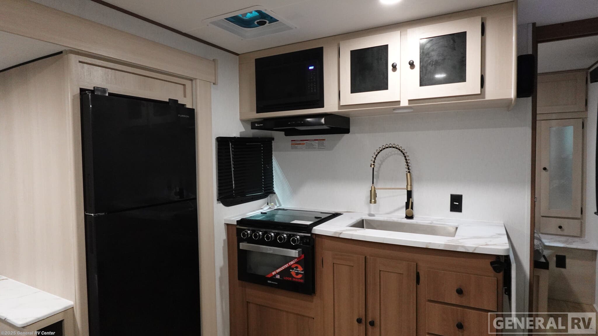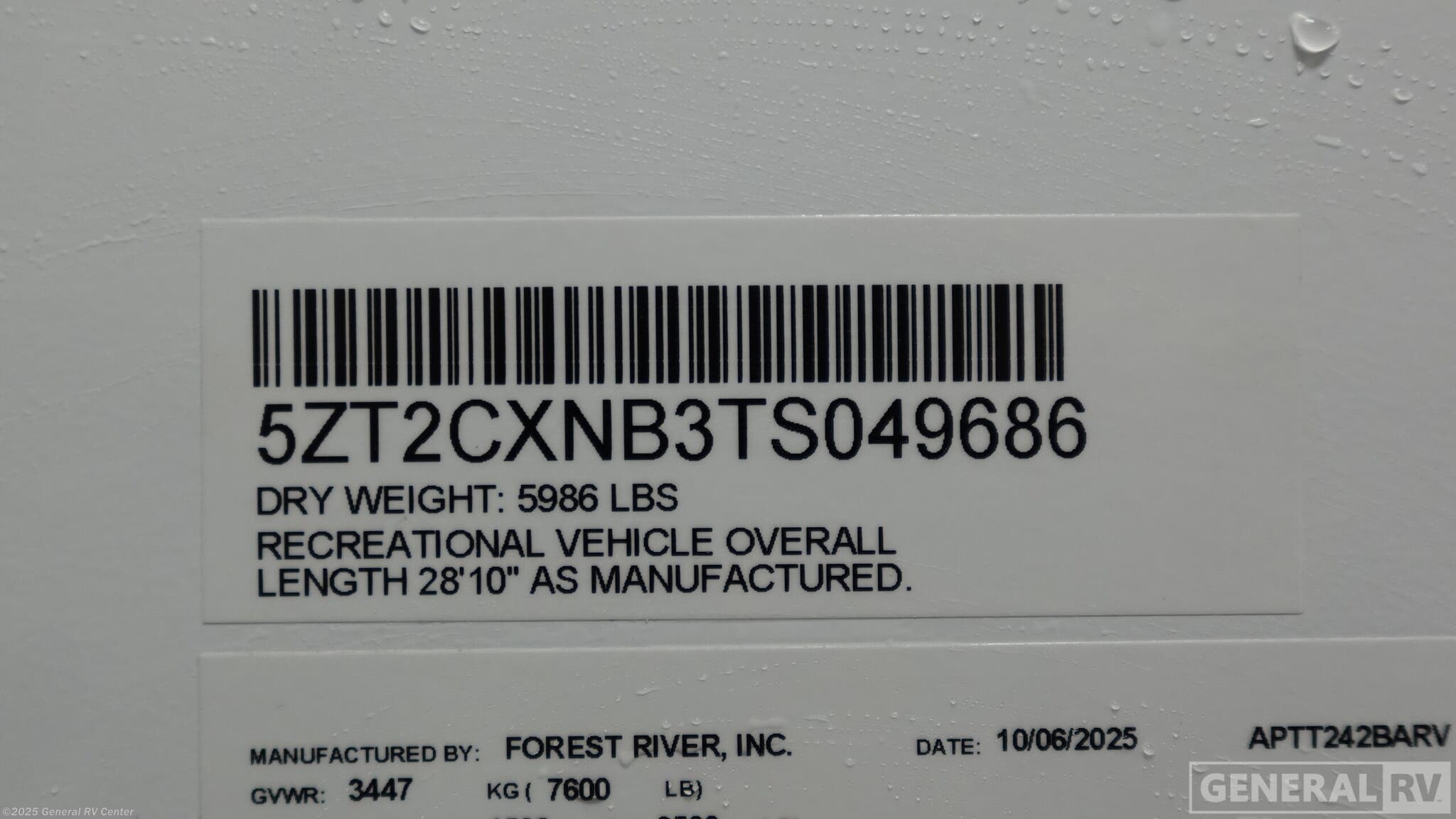Experience the perfect blend of comfort and convenience with the 2026 Coachmen Apex Ultra-Lite 242BARV. This travel trailer is designed for those who seek adventure without compromising on modern amenities. With a length of just under 29 feet, it offers a spacious yet cozy environment, perfect for a family of four. The front bedroom features a luxurious queen bed with ample storage, ensuring restful nights under the stars. The center living area invites relaxation with its 68" tri-fold sofa, ideal for lounging or converting into an extra sleeping space. The heart of this RV is its well-appointed center kitchen, complete with a bar countertop and stools, making it a delightful spot for meals and gatherings. The kitchen is equipped with a mid-size electric refrigerator and a three-burner cooktop, offering all the comforts of home cooking. The rear bath provides privacy and convenience, featuring a 34" corner shower with a sleek plastic and glass design. Outside, enjoy the 16-foot powered retractable awning, perfect for extending your living space into the great outdoors. With a cargo capacity of 1828 pounds, you'll have plenty of room for all your gear and essentials. Embrace the open road with the Coachmen Apex Ultra-Lite 242BARV, and make every journey a memorable one. For more details, visit your nearest General RV dealership and explore this incredible travel trailer in person!