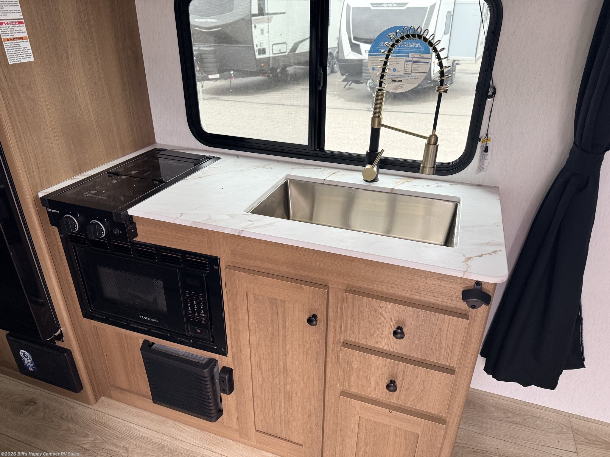 Furnace, Microwave, Refrigerator, Refrigerator (12V), Stove Top Burner, Tankless Demand Gas Water Heater, Water Heater -