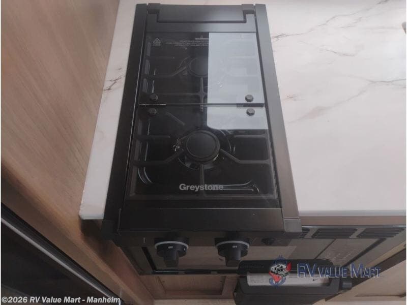 This travel trailer offers versatility with a front fixed bed or optional Murphy bed depending on your needs. There is a rear corner double bed bunk above a lower flip up double bed and a booth dinette that can transform into an extra sleeping space when you're not using it to enjoy a meal or play a card game. Everyone can stay clean with tub/shower in the rear corner bathroom and keep their bellies full with the two burner cooktop and 10 cu. ft. 12V refrigerator. You can even cook outdoors with the exterior camp kitchen while staying protected by the power awning with LED lighting!