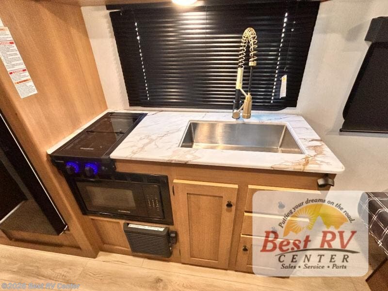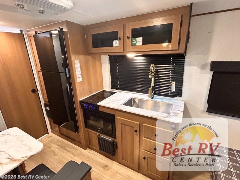 - AWAY ASSIST HANDLE, FRICTION HINGE ENTRY DOOR, SOLID STEP, MAGNETIC BAGGAGE DOOR CATCH, HARD VALANCES W /ROLLER SHADES, LED INTERIOR LIGHTS, AIR FRYER MICROWAVE, 2-BURNER COOK-TOP, 10 CU FT 12V REFER,