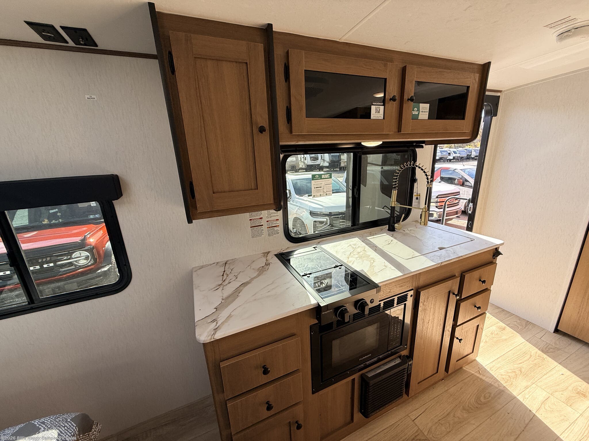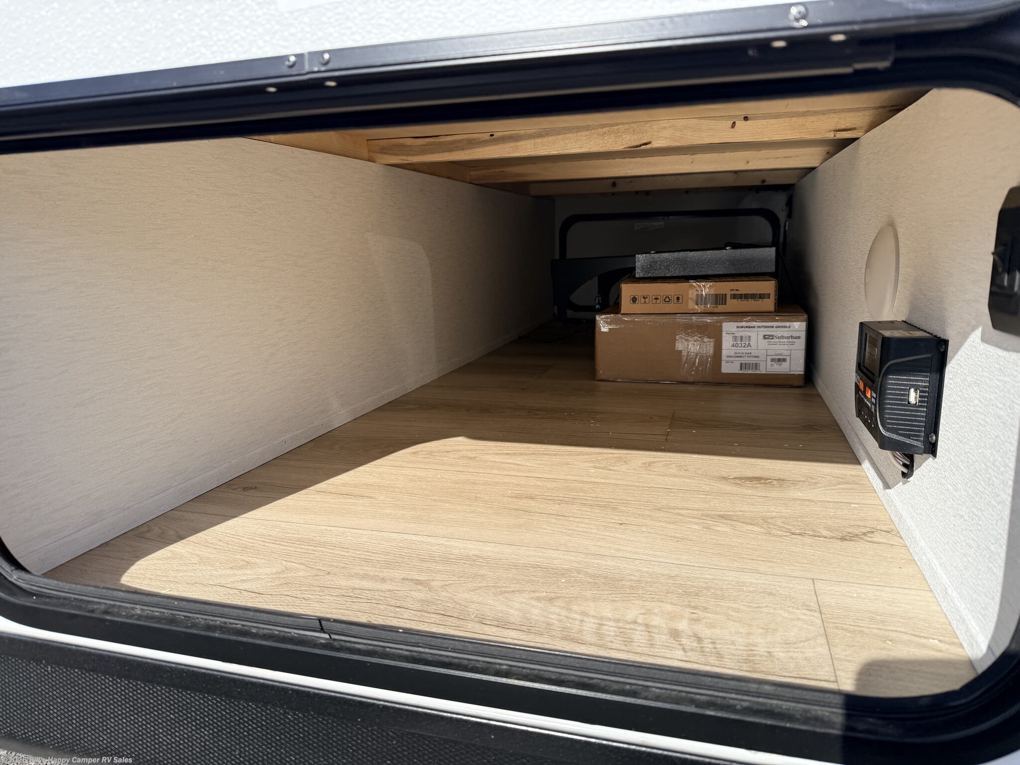 Awning, Black Tank Flush, External Shower, Fiberglass Sidewalls, Griddle, Pass Thru Storage, Power Awning, Roof Vent, Screen Door, Skylight, Stabilizer Jacks, Tinted Windows -
