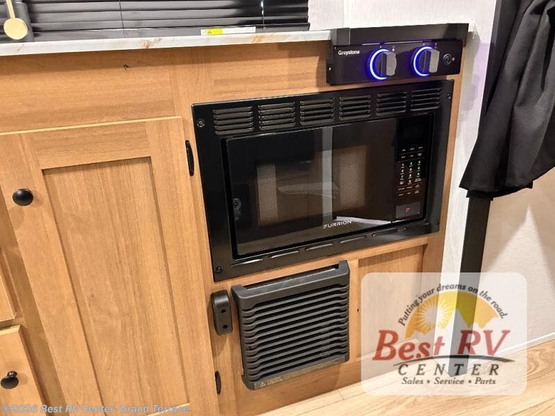 - LADDER PREP, CAST IRON GRIDDLE, MOUNTED WIRELESS BLUETOOTH SPEAKER, STABILIZER JACKS, LP PORT, TANKLESS WATER HEATER, H/C OUTSIDE SHOWER, BLACK TANK FLUSH, SWING AWAY ASSIST HANDLE, FRICTION HINGE ENTRY DOOR, SOLID STEP, MAGNETIC BAGGAGE DOOR CATCH, HARD VALANCES W /ROLLER SHADES,