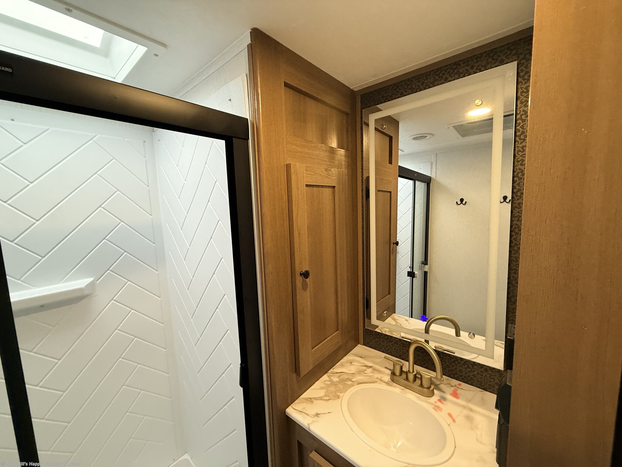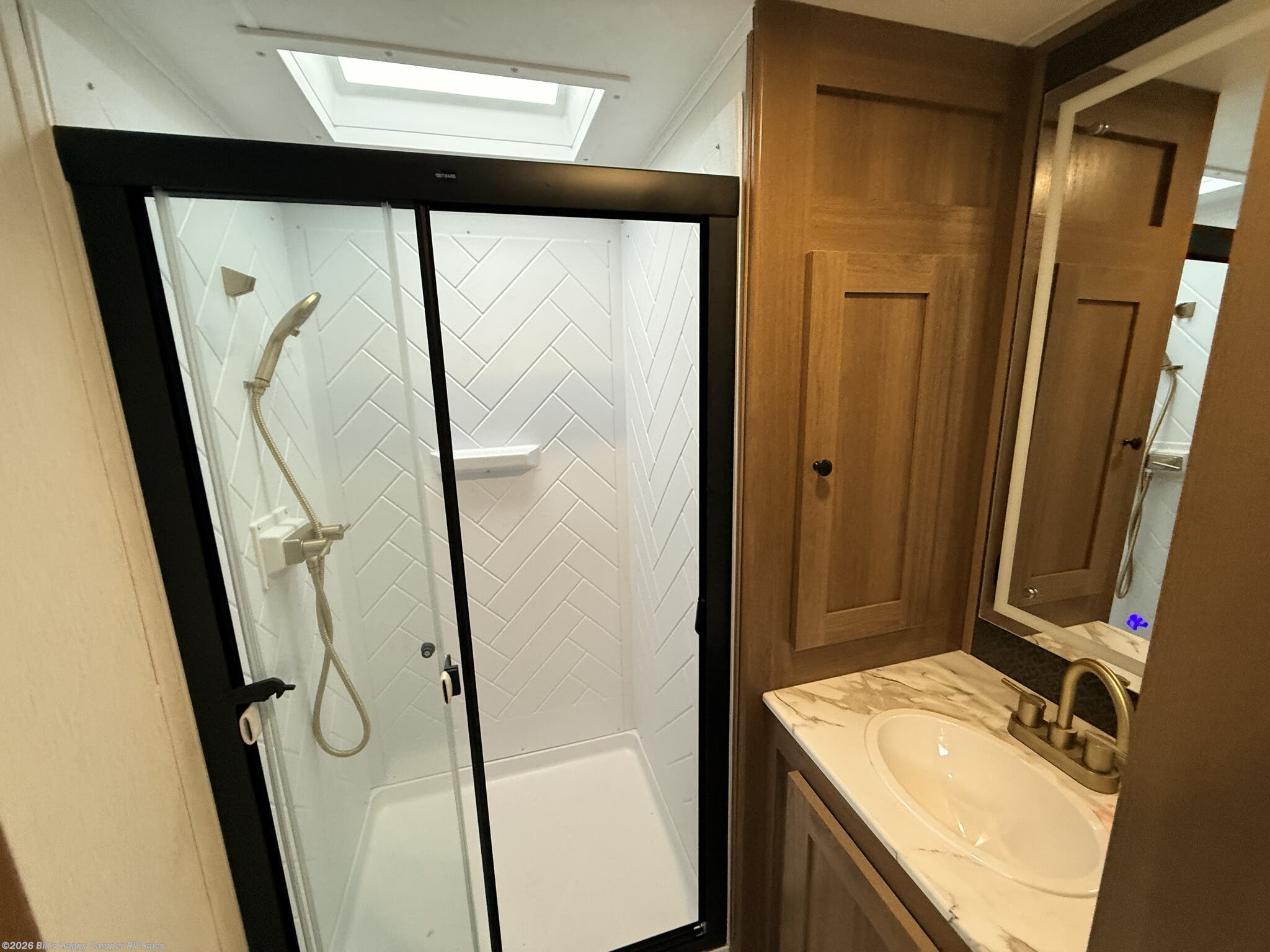 Awning, Black Tank Flush, Detachable, Enclosed Underbelly, External Shower, Fiberglass Sidewalls, Front Fiberglass Cap w/Window, Front Overhead Storage, Heated Underbelly, Pass Thru Storage, Power Awning, Power Hitch Jack, Screen Door, Second Roof A/C, Skylight, Slam Latch Baggage Doors, Stabilizer Jacks, Tinted Windows -
