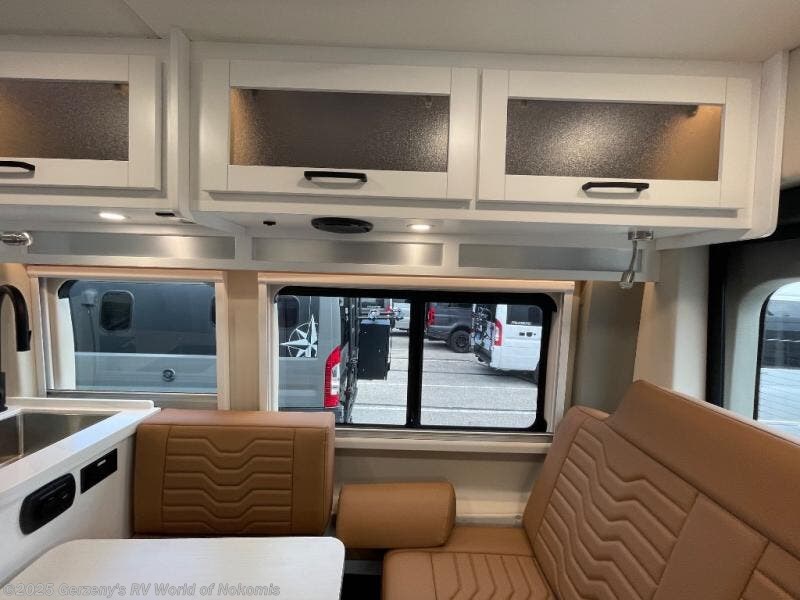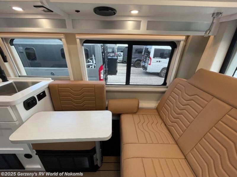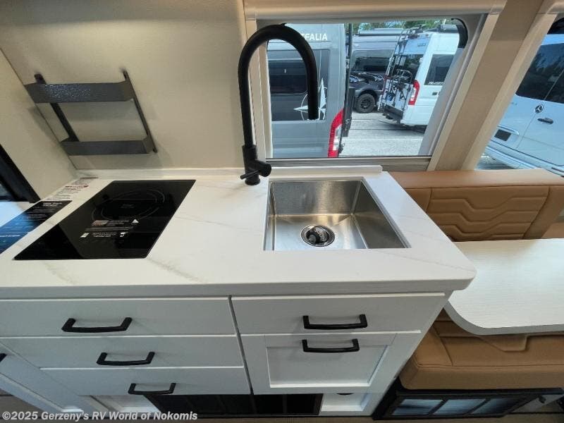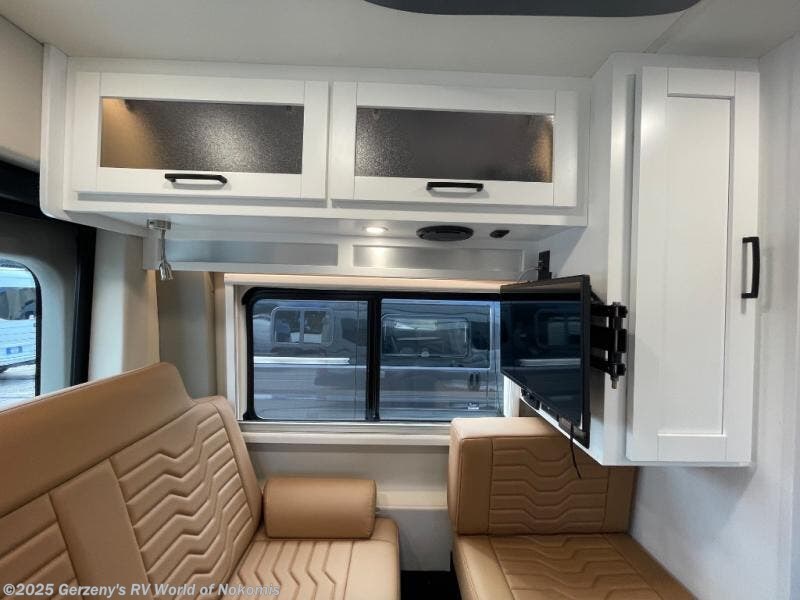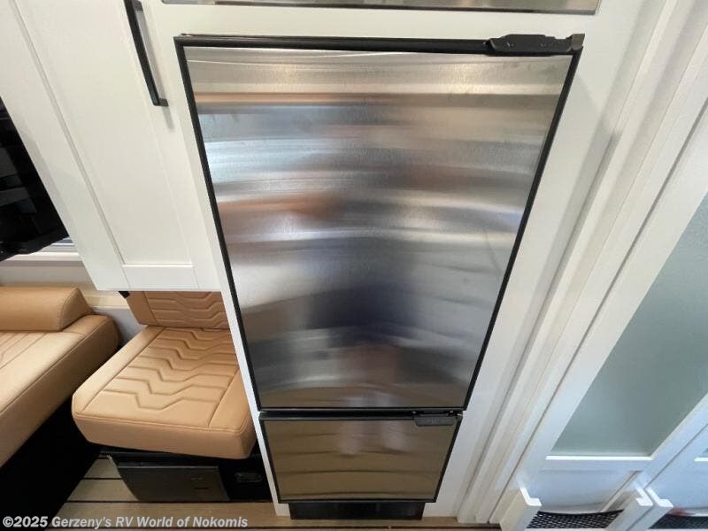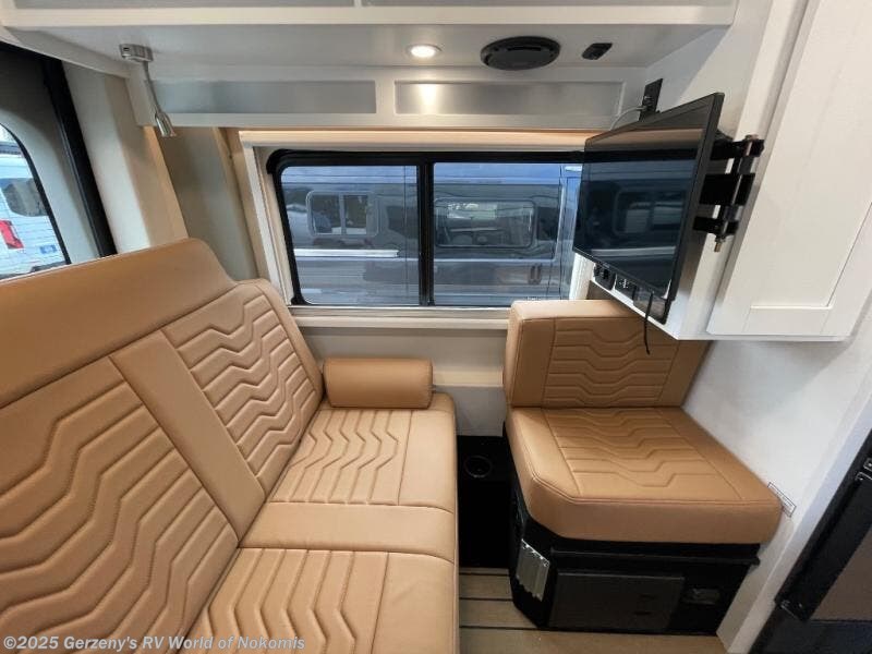This all-wheel drive coach is perfect for trips near and far. Once you park, you can swivel the captain's seats around to enjoy lunch at the swivel table, and you can freshen up in the convenient wet bath before heading out to stretch your legs. There is an induction cooktop, a round sink, plus a Nova Kool compressor refrigerator for your perishables. The two jump seats and rear power sofa will convert to a comfortable bed at night, and the swivel table in between will allow you to play a game of cards before bed. And don't worry about storage space since this model includes overhead compartments and a wardrobe to keep your clothes wrinkle-free!