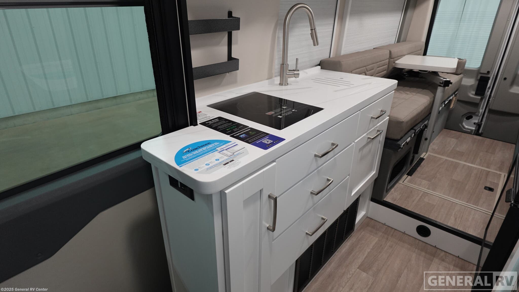 Discover the 2026 Coachmen Beyond 22D AWD, a marvel of modern engineering nestled on a robust Ford Transit chassis. With its EcoBoost V6 engine delivering 310 horsepower and 400 lb-ft of torque, this RV promises a smooth, powerful ride across any terrain. At just over 22 feet in length, this compact yet spacious vehicle is designed for adventure seekers who crave both mobility and comfort. The innovative floorplan features a center kitchen and bath, accompanied by a rear living area that transforms into a cozy sleeping space for two. The convertible sofa bed ensures that every inch is utilized to its fullest potential. Inside, the Beyond 22D AWD is equipped with all the essentials for a comfortable journey. The galley kitchen boasts a single-burner cooktop and a mid-size electric refrigerator, perfect for preparing meals on the go. The wet bath with a shower curtain offers convenience without compromising on space. Enjoy the outdoors under the 13.1 ft. powered retractable awning, creating the perfect setting for relaxation. With a fresh water capacity of 27 gallons and both gray and black water tanks, this RV is prepared for extended road trips. Visit your nearest General RV dealership to explore this exceptional vehicle in person.