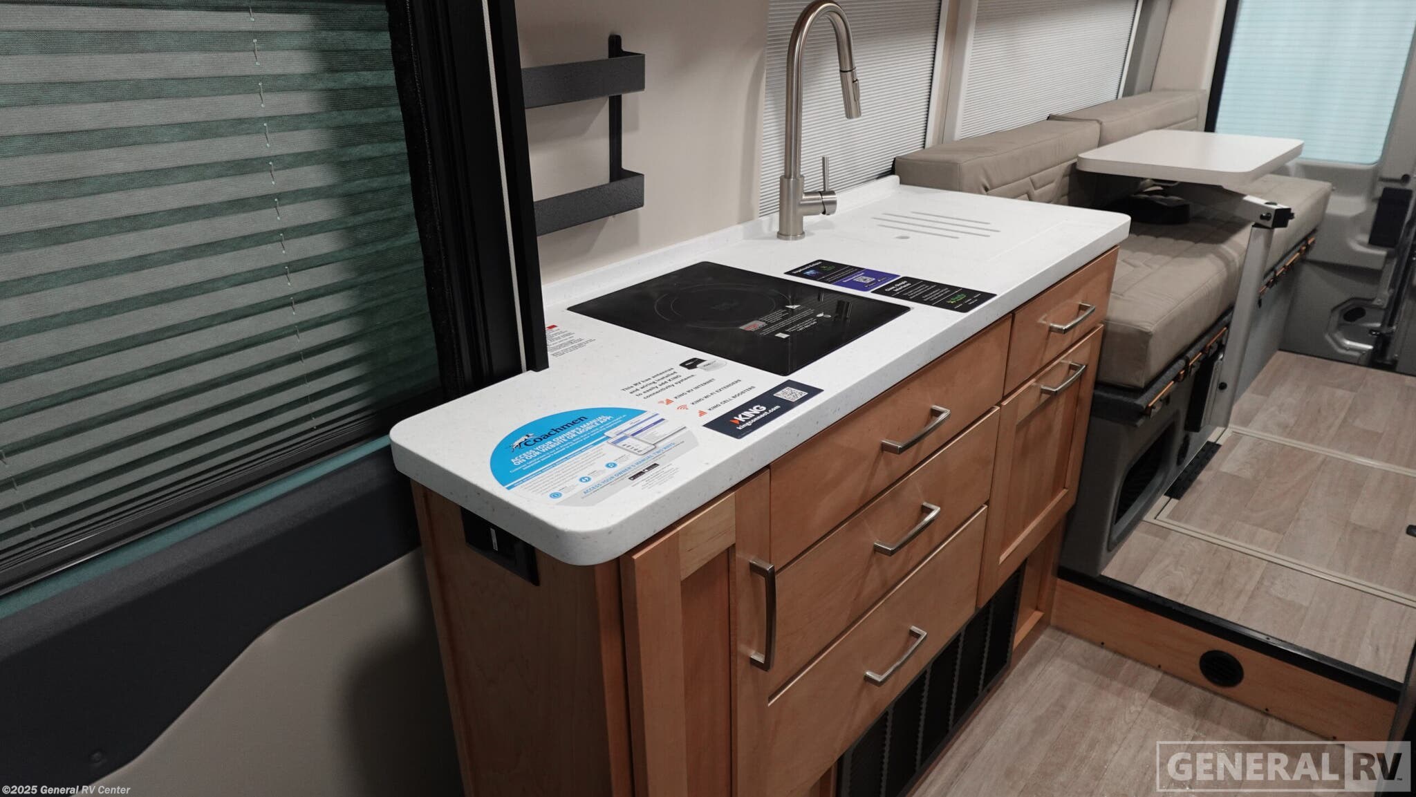 Discover the 2026 Coachmen Beyond 22D AWD, a marvel of modern engineering nestled on a robust Ford Transit chassis. With its EcoBoost V6 engine delivering 310 horsepower and 400 lb-ft of torque, this RV promises a smooth, powerful ride across any terrain. At just over 22 feet in length, this compact yet spacious vehicle is designed for adventure seekers who crave both mobility and comfort. The innovative floorplan features a center kitchen and bath, accompanied by a rear living area that transforms into a cozy sleeping space for two. The convertible sofa bed ensures that every inch is utilized to its fullest potential. Inside, the Beyond 22D AWD is equipped with all the essentials for a comfortable journey. The galley kitchen boasts a single-burner cooktop and a mid-size electric refrigerator, perfect for preparing meals on the go. The wet bath with a shower curtain offers convenience without compromising on space. Enjoy the outdoors under the 13.1 ft. powered retractable awning, creating the perfect setting for relaxation. With a fresh water capacity of 27 gallons and both gray and black water tanks, this RV is prepared for extended road trips. Visit your nearest General RV dealership to explore this exceptional vehicle in person.