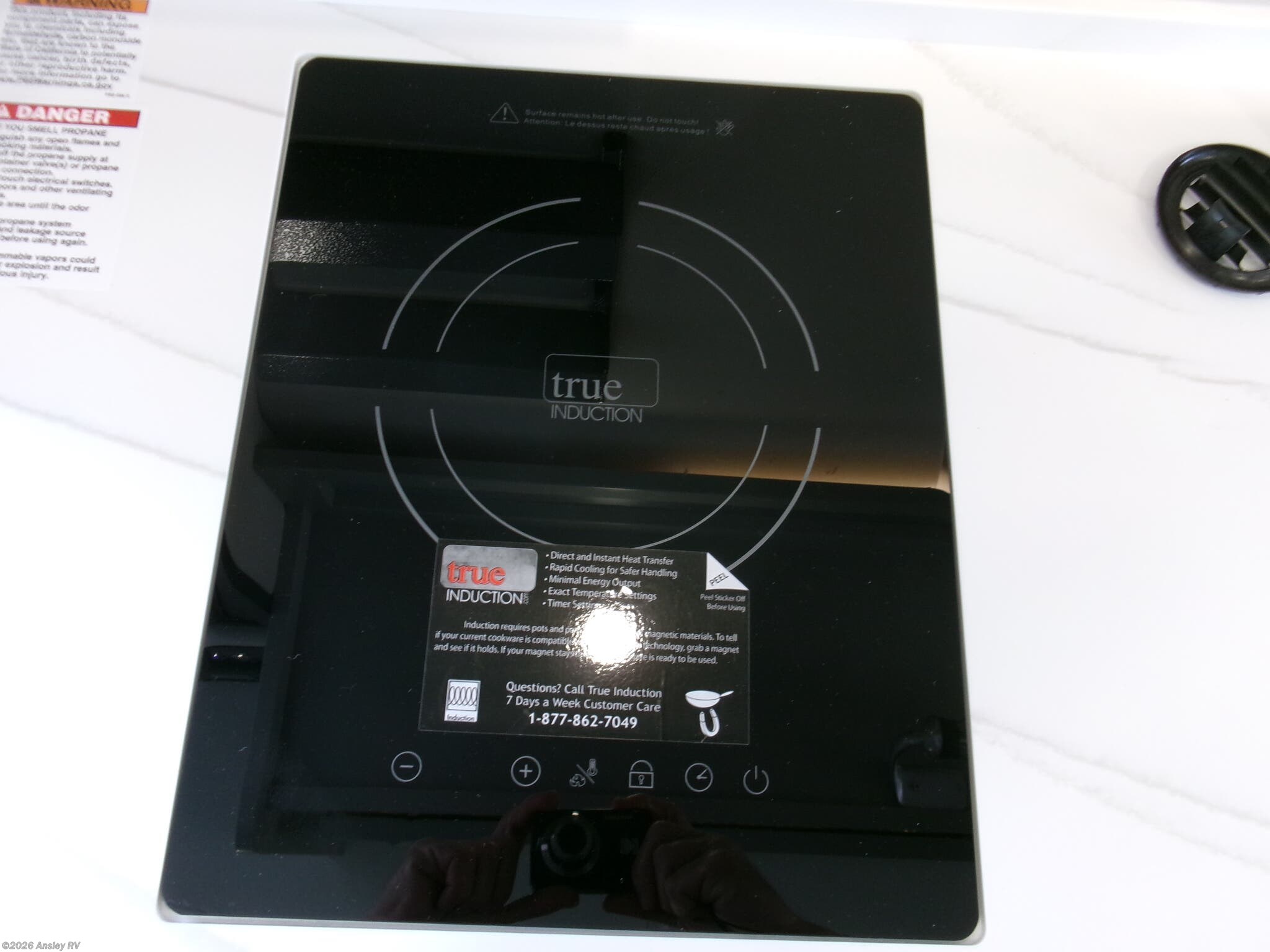 Convenience Package: RVQG2800I 2.8 KW Gas Generator, Power Armless Awning with Motion Sensing & LED Lighting, Side Screen Door, Rear Screen, Truma G Furnace/Water Heater, Air Fryer Convection Microwave, Fantastic Fan w/ Rain Sensor, Single Induction COoktop, Sumo Spring Suspension Kit, 30 AMP Smart Plug