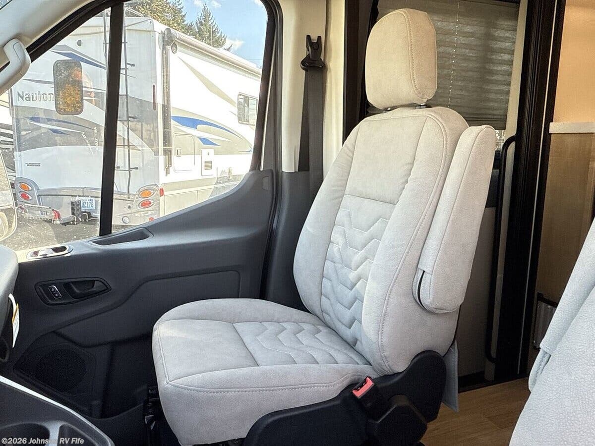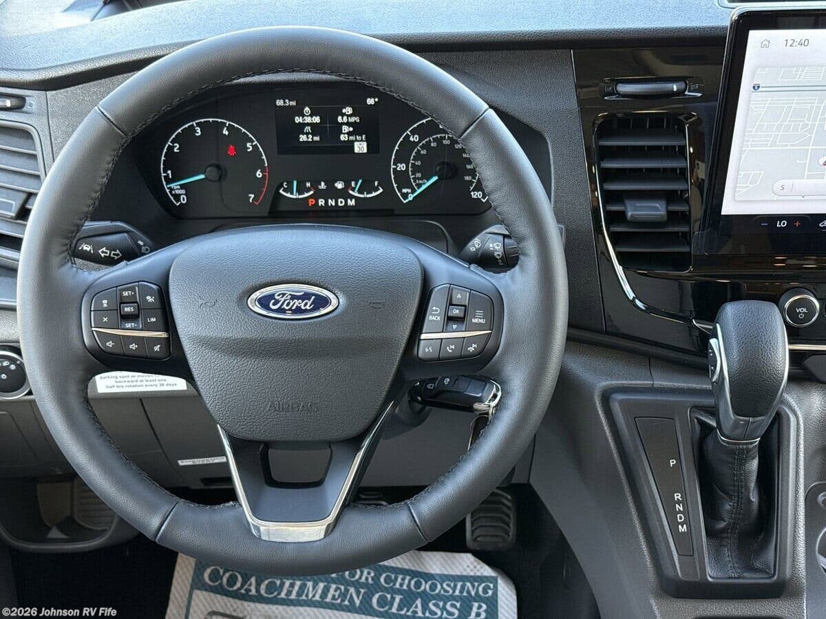 The 2026 Coachmen Beyond Transit AWD 22RB is a state-of-the-art recreational vehicle designed for those who crave adventure without sacrificing comfort. This Class B RV is built on the robust Ford Transit 350HD All Wheel Drive chassis, ensuring a smooth and reliable ride across various terrains. Powered by a 3.5L EcoBoost gas engine, it delivers an impressive 310 horsepower and 400 lb-ft of torque, paired with a 10-speed transmission and a 3.73 limited slip axle for enhanced performance. The Supersprings suspension kit further enhances the driving experience, providing stability and comfort on the road. Safety is a top priority in the Coachmen Beyond, featuring a comprehensive suite of safety technologies. These include a 360-degree camera for complete visibility, the BLIS-Blind Spot Information System, a side sensing system, reverse brake assist, and forward collision warning. Additional safety features include a tire pressure monitoring system, HID headlamps, and front fog lights, ensuring peace of mind during your travels. The cab of the RV is designed for convenience and comfort, equipped with remote engine start and keyless entry. The driver and passenger seats swivel, allowing for easy interaction with the living space. The Sync 4 display provides seamless connectivity and control over various vehicle functions. Inside, the living spaces are thoughtfully designed to maximize comfort and functionality. Key features include: - Carefree armless motion sensing awning - Side screen door and ABS insulated rear doors - Rear door pull-down screen and window covers - Ground effect lighting and LED lighting throughout - Front and rear swivel tables - Sofa with Q-Foam for added comfort - Hardwood cabinetry for a touch of elegance The dining area is equipped with modern amenities to make meal preparation a breeze: - Square sink with a pull-out sprayer faucet - Nova Kool compressor refrigerator - Induction cooktop - Air fryer convection microwave (not available in 22RB) - MaxxAir fan with rain sensor and remote For entertainment and connectivity, the RV includes: - Firefly multiplex with dual screens - King Olympus digital antenna - WiFi router and cell booster prep - USB ports for charging devices - 24-inch LED Smart TV Sleeping arrangements are designed for comfort, featuring: - Rear pull-down shade for privacy - Q-Foam in sofa and twin beds - Wardrobe for storage The bathroom is compact yet functional, offering: - Wet bath with fiberglass shower - Toilet The mechanical systems of the Coachmen Beyond are designed for efficiency and sustainability: - 51-pound LP tank - 30-amp LED smart plug service cord - 195-watt solar panel with dual charge capability - 2.8 RVQG2800i gas generator - 2000-watt Xantrex inverter - Truma Combi Eco Plus furnace water heater For those seeking an eco-friendly option, the RV offers an optional lithium battery system, which removes the Onan generator feature and includes: - 640Ah lithium battery with internal heater - Bluetooth management with LCD display - Second alternator - Xantrex XC Pro 3000-watt inverter The 2026 Coachmen Beyond Transit AWD 22RB is a versatile and luxurious RV, perfect for those who want to explore the open road with all the comforts of home. Whether you're embarking on a cross-country journey or a weekend getaway, this RV is equipped to meet your needs and exceed your expectations. ??