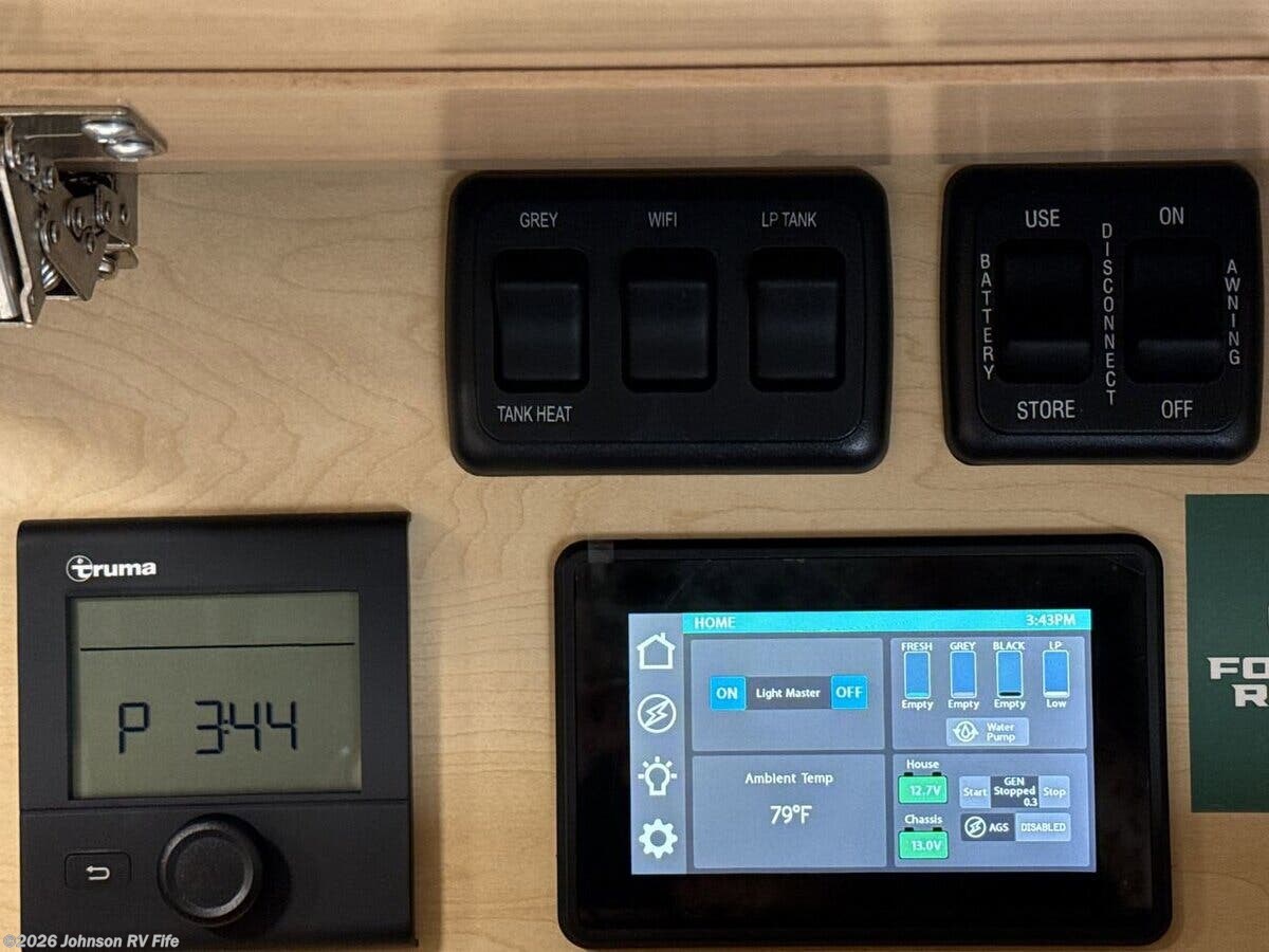 Features Include: 360-Degree Camera, Side Sensing System, Reverse Brake Assist, HID Headlamps, Remote Engine Start, Keyless Entry, Side Screen Door, Ground Effect Light, LED Lighting, Sofa Q-Foam, Square Sink, Induction Cooktop, WiFi Router, Cell Booster Prep, USB Ports, Rear Pull Down Shade, Wardrobe Bathroom, Wet Bat, Fiberglass Shower, Toilet Mechanicals, 51# LP Tank, 195w Solar Panel, Internal Heater, Bluetooth Management, LCD Display, Second Alternator