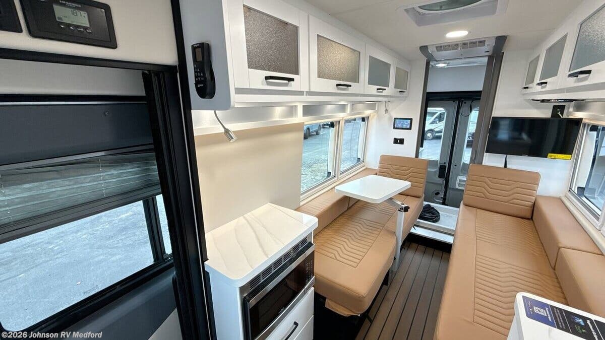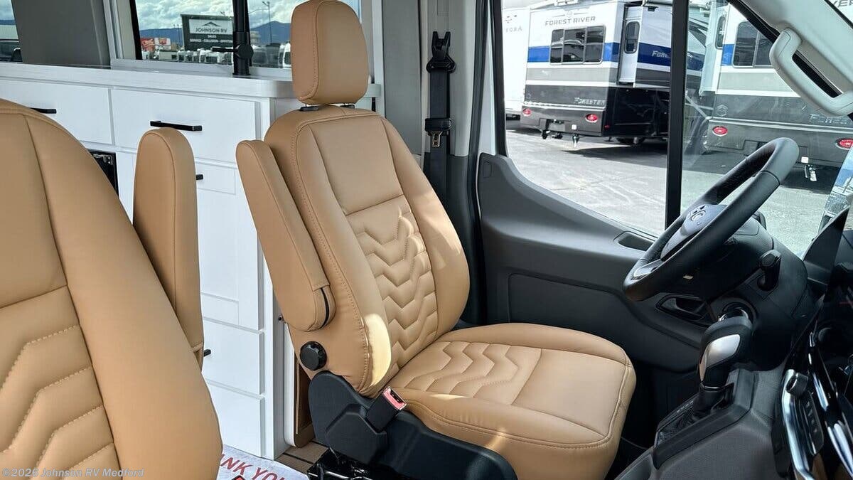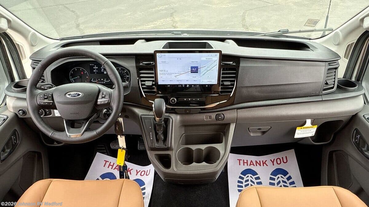 The 2026 Coachmen Beyond Transit AWD 22RB is a state-of-the-art recreational vehicle designed for those who crave adventure without sacrificing comfort. This Class B RV is built on the robust Ford Transit 350HD All Wheel Drive chassis, ensuring a smooth and reliable ride across various terrains. Powered by a 3.5L EcoBoost gas engine, it delivers an impressive 310 horsepower and 400 lb-ft of torque, paired with a 10-speed transmission and a 3.73 limited slip axle for enhanced performance. The Supersprings suspension kit further enhances the driving experience, providing stability and comfort on the road. Safety is a top priority in the Coachmen Beyond, featuring a comprehensive suite of safety technologies. These include a 360-degree camera for complete visibility, the BLIS-Blind Spot Information System, a side sensing system, reverse brake assist, and forward collision warning. Additional safety features include a tire pressure monitoring system, HID headlamps, and front fog lights, ensuring peace of mind during your travels. The cab of the vehicle is designed with convenience and comfort in mind. It includes remote engine start and keyless entry for ease of access. The driver and passenger swivel seats offer flexibility and comfort, while the Sync 4 display provides intuitive control over the vehicle's systems. Inside, the living spaces are thoughtfully designed to maximize comfort and functionality. Key features include: - Carefree armless motion sensing awning - Side screen door and ABS insulated rear doors - Rear door pull-down screen and window covers - Ground effect lighting and LED lighting throughout - Front and rear swivel tables - Sofa with Q-Foam for added comfort - Hardwood cabinetry for a touch of elegance The dining area is equipped with modern amenities to make meal preparation a breeze: - Square sink with a pull-out sprayer faucet - Nova Kool compressor refrigerator - Induction cooktop - Air fryer convection microwave (not available in 22RB) - MaxxAir fan with rain sensor and remote For entertainment and connectivity, the Coachmen Beyond offers: - Firefly multiplex with dual screens - King Olympus digital antenna - WiFi router and cell booster prep - USB ports for charging devices - 24-inch LED smart TV Sleeping arrangements are designed for comfort, featuring: - Rear pull-down shade for privacy - Q-Foam in sofa and twin beds - Wardrobe for storage The bathroom is compact yet functional, including: - Wet bath with fiberglass shower - Toilet The mechanical systems of the RV are designed for efficiency and convenience: - 51-pound LP tank - 30-amp LED smart plug service cord - 195w solar panel with solar dual charge capability - 2.8 RVQG2800i gas generator - 2000w Xantrex inverter - Truma Combi Eco Plus furnace water heater An optional Li Lithium Battery System is available, which removes the Onan generator feature and includes: - 640Ah lithium battery with internal heater - Bluetooth management with LCD display - Second alternator - Xantrex XC Pro 3000w inverter The 2026 Coachmen Beyond Transit AWD 22RB is a versatile and luxurious RV, perfect for those who want to explore the open road with all the comforts of home. Whether you're embarking on a weekend getaway or a cross-country adventure, this RV is equipped to meet your needs. ??