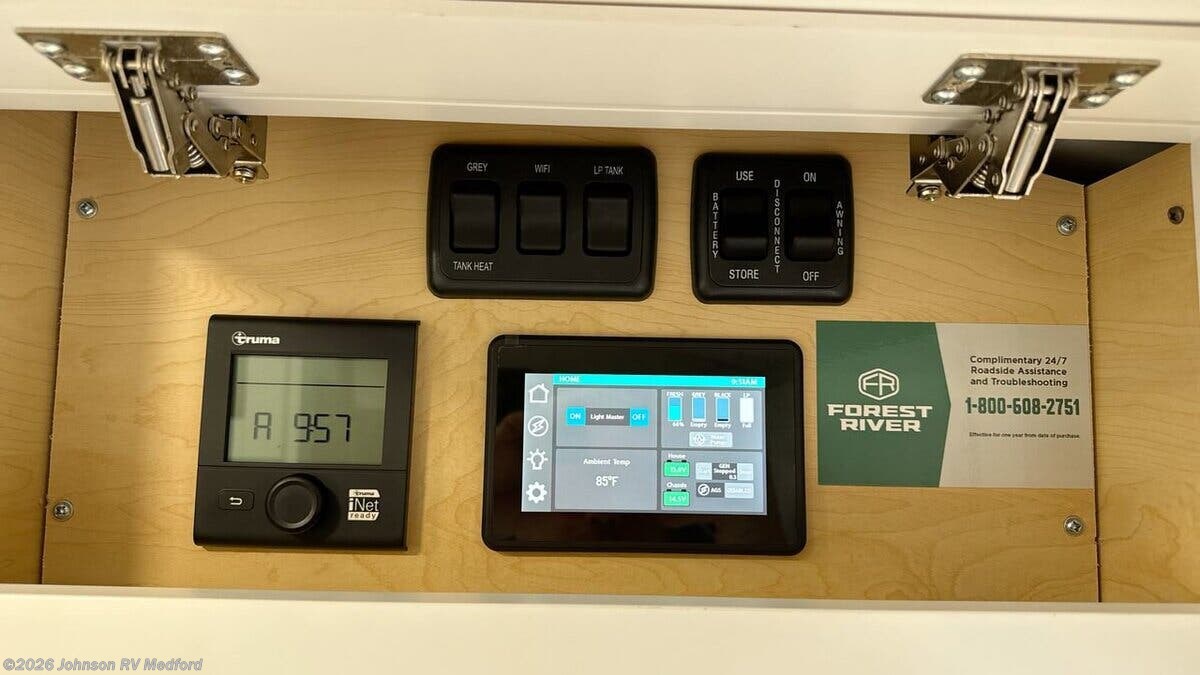 Features Include: 360-Degree Camera, Side Sensing System, Reverse Brake Assist, HID Headlamps, Remote Engine Start, Keyless Entry, Side Screen Door, Ground Effect Light, LED Lighting, Sofa Q-Foam, Square Sink, Induction Cooktop, WiFi Router, Cell Booster Prep, USB Ports, Rear Pull Down Shade, Wardrobe Bathroom, Wet Bat, Fiberglass Shower, Toilet Mechanicals, 51# LP Tank, 195w Solar Panel, Internal Heater, Bluetooth Management, LCD Display, Second Alternator