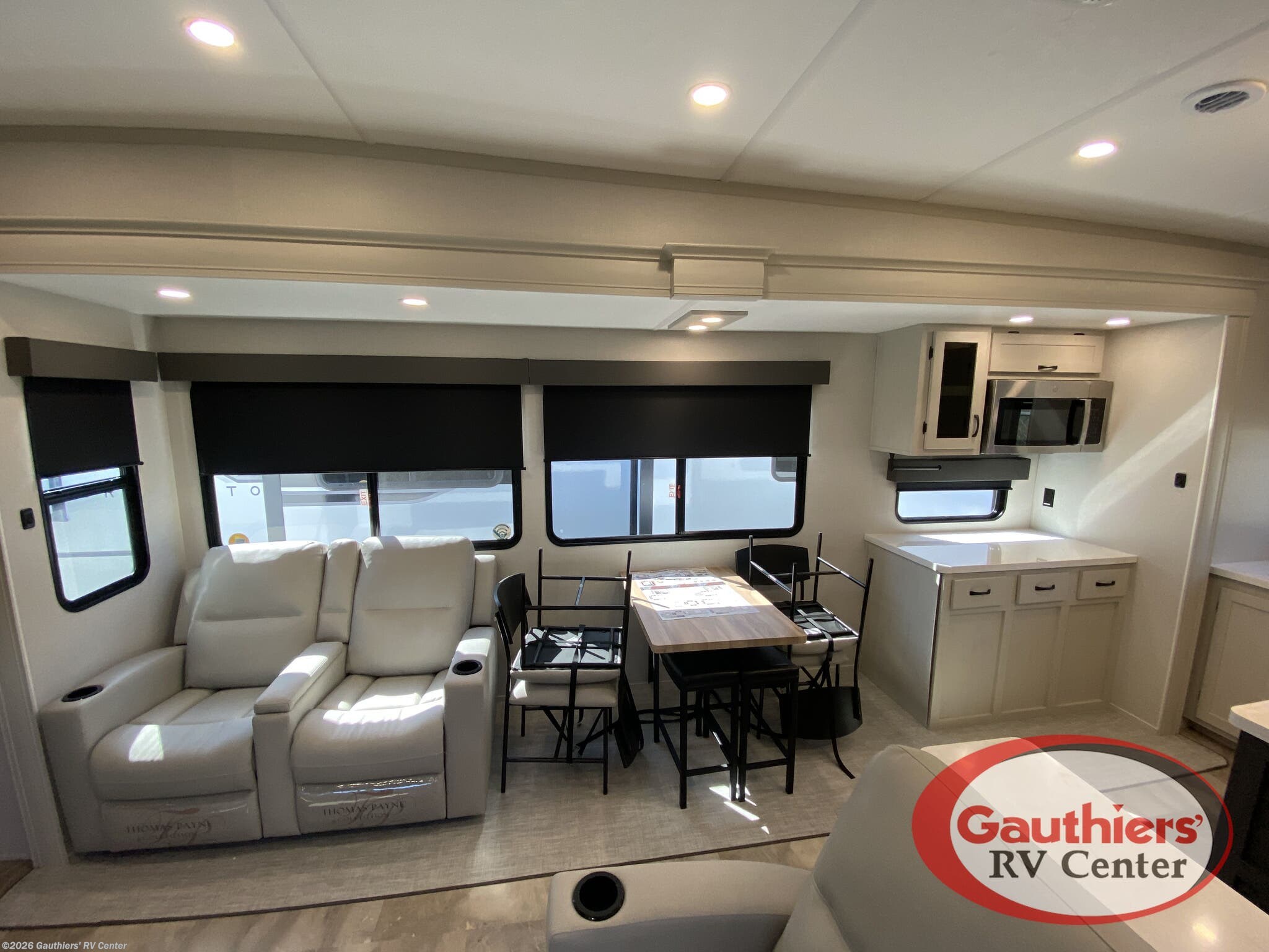 - Free Standing Dinette with Chairs, King Size Bed, and Rocker Recliner(s) for home-like comfort