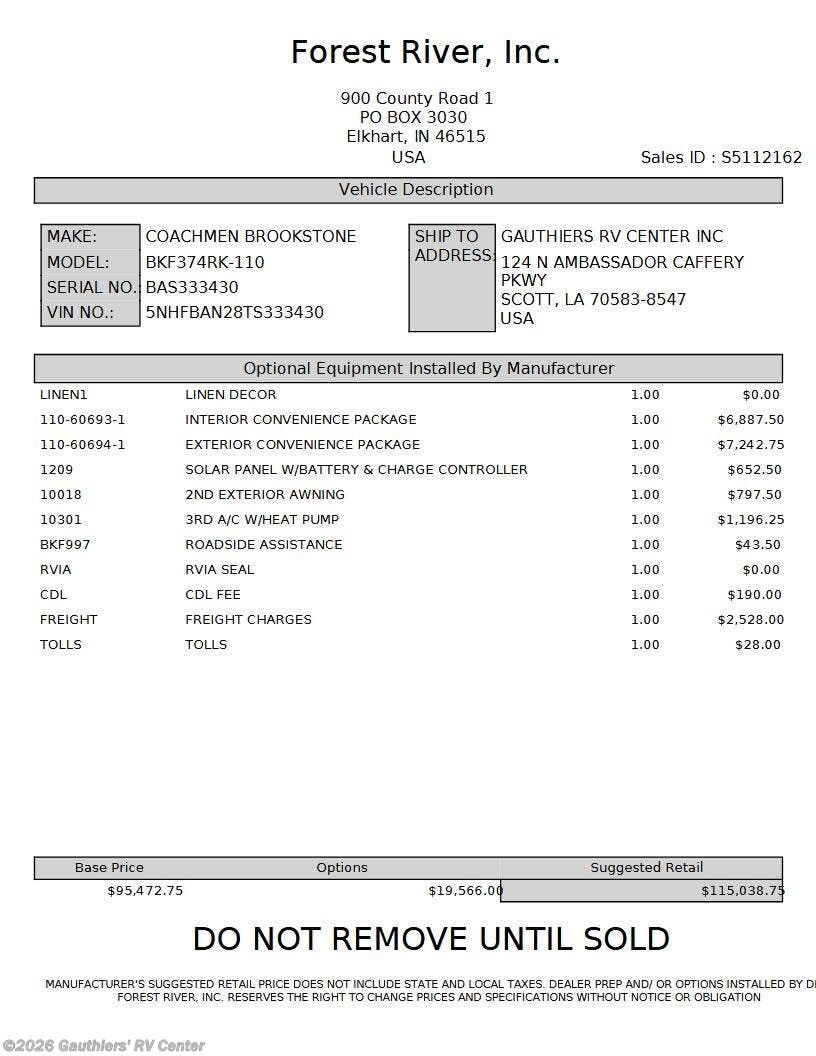 Request More Info on this 2026 Coachmen Brookstone 374RK Offered for sale by Gauthiers' RV Center