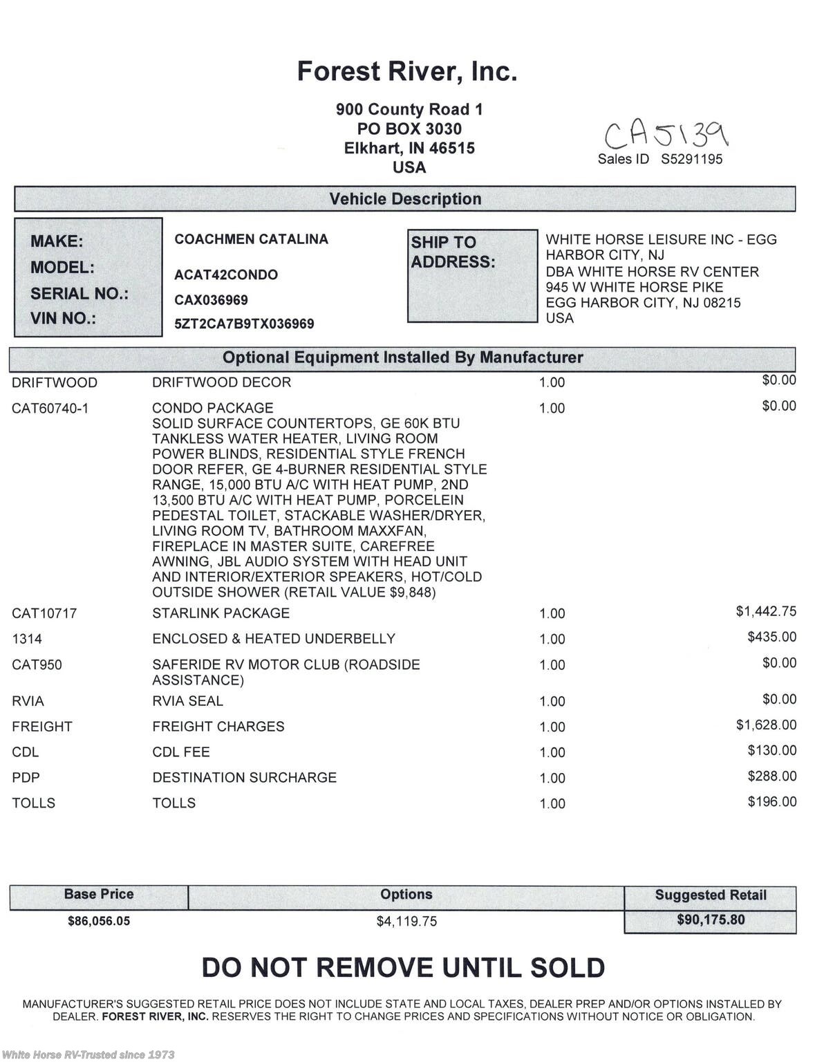 Request More Info on this 2026 Coachmen Catalina Destination 42CONDO Offered for sale by White Horse RV Center