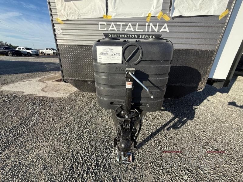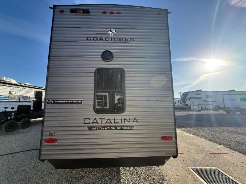 With any Catalina Destination trailer by Coachmen, you will enjoy comfortable extended stays wherever you decide to set up camp! The full length frame outriggers add strength to each unit, along with a seamless Alpha Roof membrane and Norco electromagnetic, powder coated chassis. You will love the open views provided by the residential-style sliding glass patio door, plus there are GE appliances, woodplank linoleum flooring, and hard valance window treatments to make your space feel more like home. Head outside to find a convenient "Leash Link" quick hookup D-ring for your furry friends, premium JBL exterior speakers, flush mount baggage doors for your gear, and the list of amenities goes on!