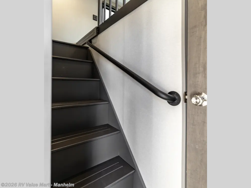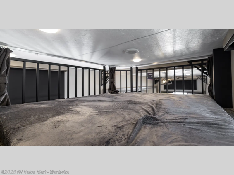 There is much to love about this destination trailer! Starting with the loft that has two queen beds, a wardrobe/storage, and a custom 58" x 71" bed. Downstairs there's a private bedroom with a king bed slide, a fireplace, and its very own private full bathroom complete with a dual sink vanity. The main living area has a huge bi-fold sleeper sectional sofa so you can fit even more guests, or just relax and watch the TV on the power lift in the entertainment center. The kitchen is well-equipped with a french door refrigerator, microwave, and pantry. The centerpiece here is a kitchen island with a deep basin farm-style sink and bar stool seating so your group can gather together and make new memories. The second full bath has a roomy 36" x 30" shower with glass door, and just around the corner find the stackable washer and dryer!