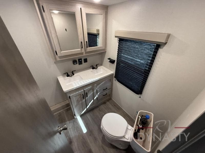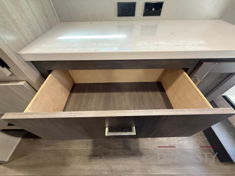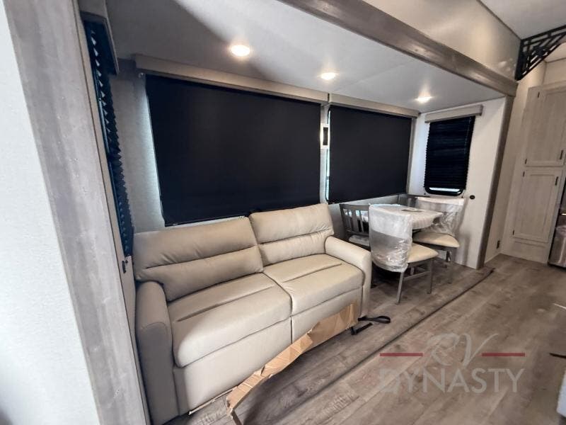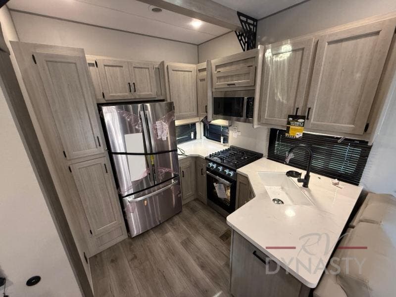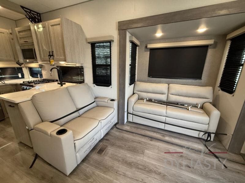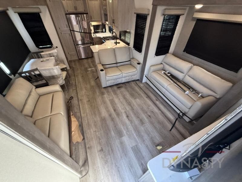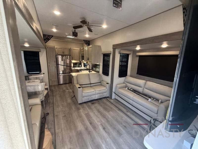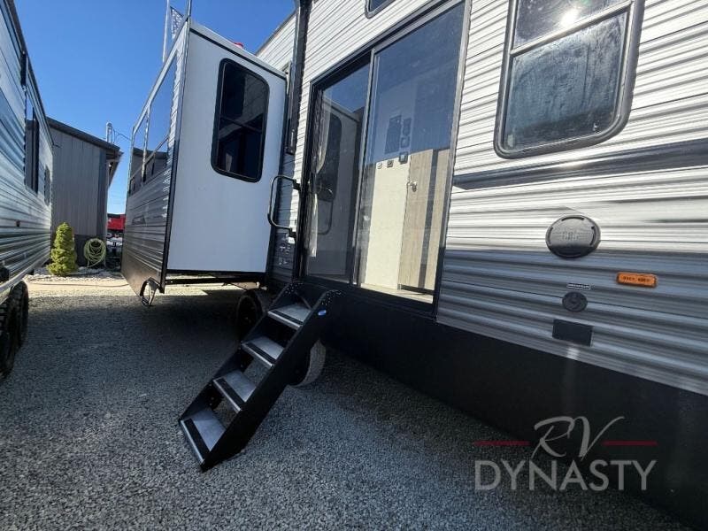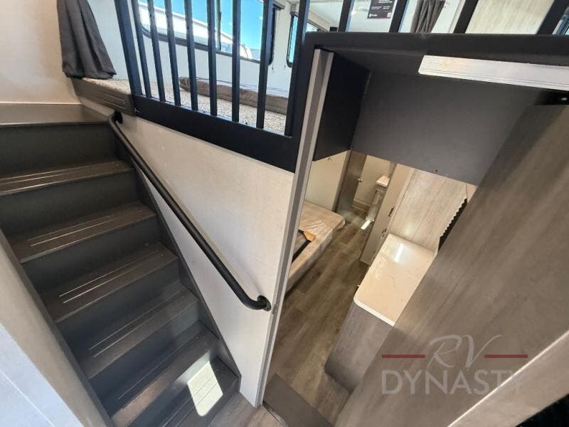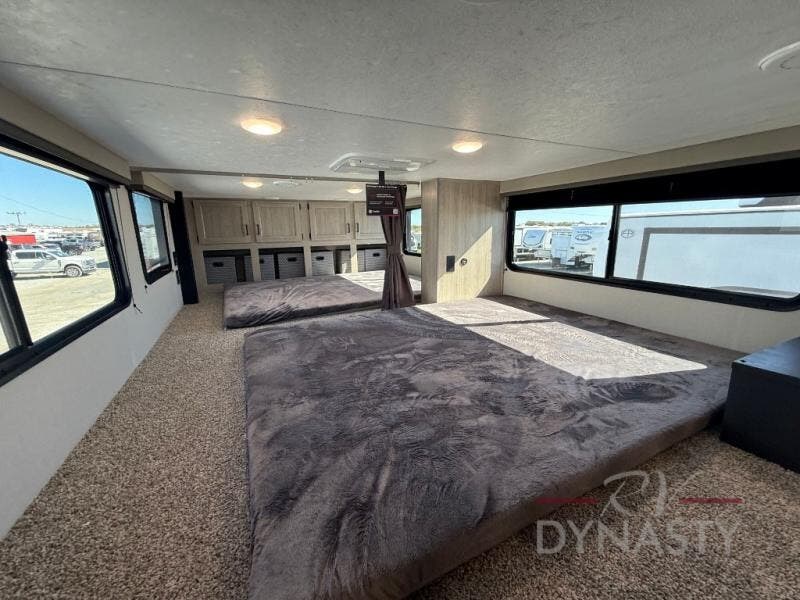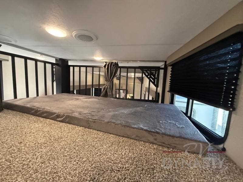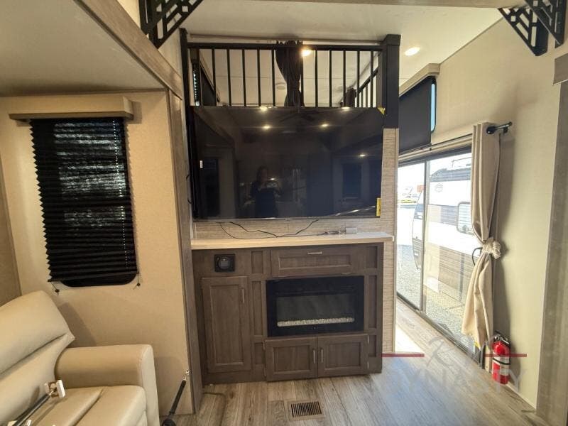 If you want to get out of the house without missing the comfort, you will love this destination trailer! Feel at home the moment you step in through the patio door and head to the open living area with double slide-outs making room for tons of seating areas to enjoy quality time by the fireplace with your guests. You will fall in love with the residential style kitchen featuring a 4 burner range, french door refrigerator, pantry, and much more to make your favorite recipes on the go. There is no such thing as too many guests when you have a loft that has two queen beds and a 28 x 64 bunk matt to rest. In the main floor you will have a master bedroom all to yourself that has its own private bath offering comfort and convenience at only a few steps away from your king bed.
