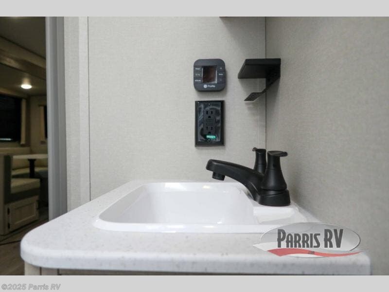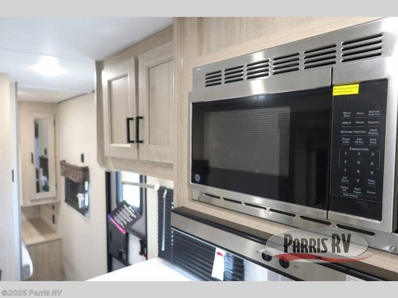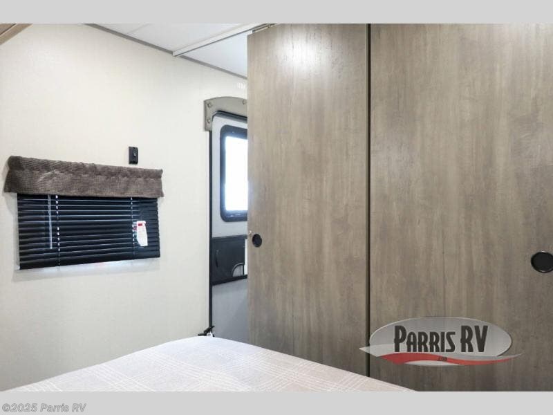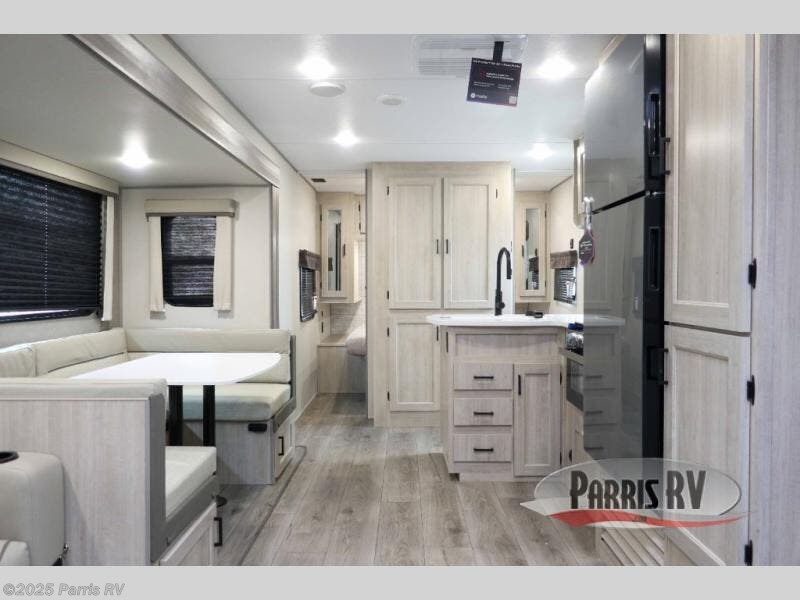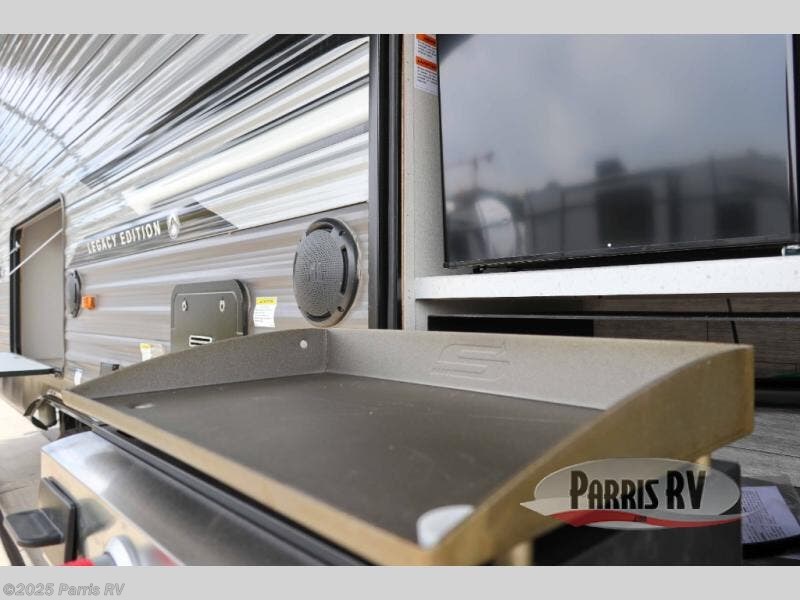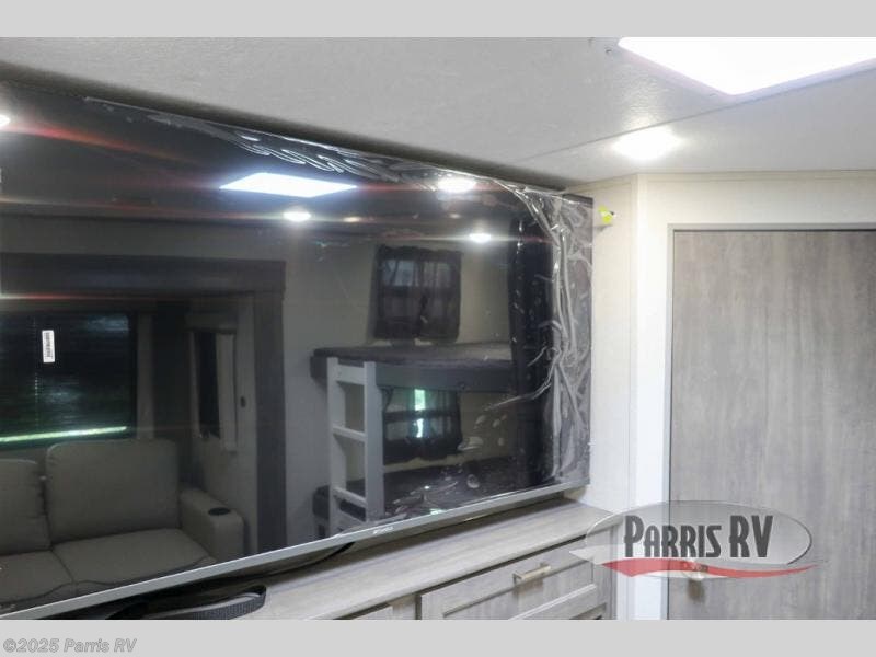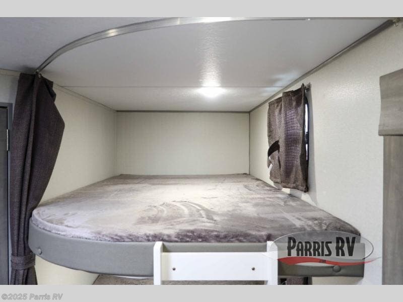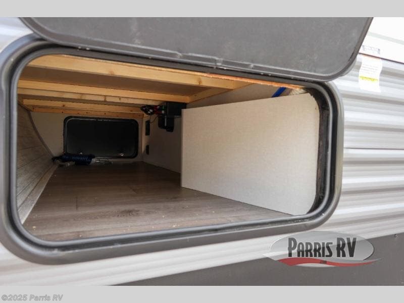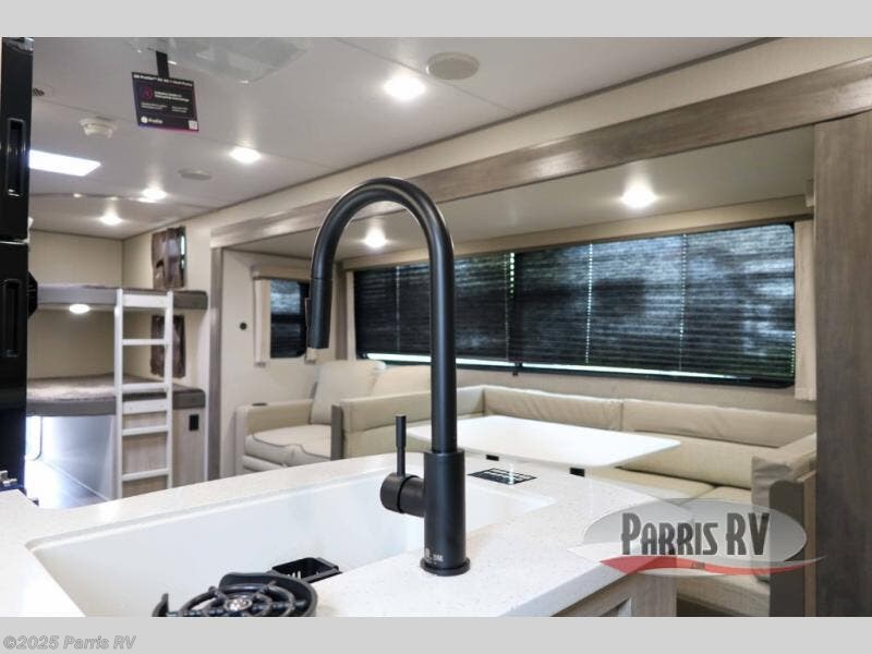 This travel trailer is perfect for your whole crew! Once you arrive at the campground, you can put out the 21' electric awning and start lunch on the exterior camper kitchen with a griddle and mini fridge. There is also a pass-thru storage plus additional exterior storage with a fold-down table and a TV hookup for added convenience. And since there are dual entry doors found on this unit, you can enter in through the full bath in the back, or the main living area towards the front! A large slide provides ample space to move about, and you'll find a trundle sofa and U-shaped dinette here for cozy seating and sleeping space. Speaking of sleeping, there is a front RV queen bed in the bedroom plus double-size bunks in the back for guests!