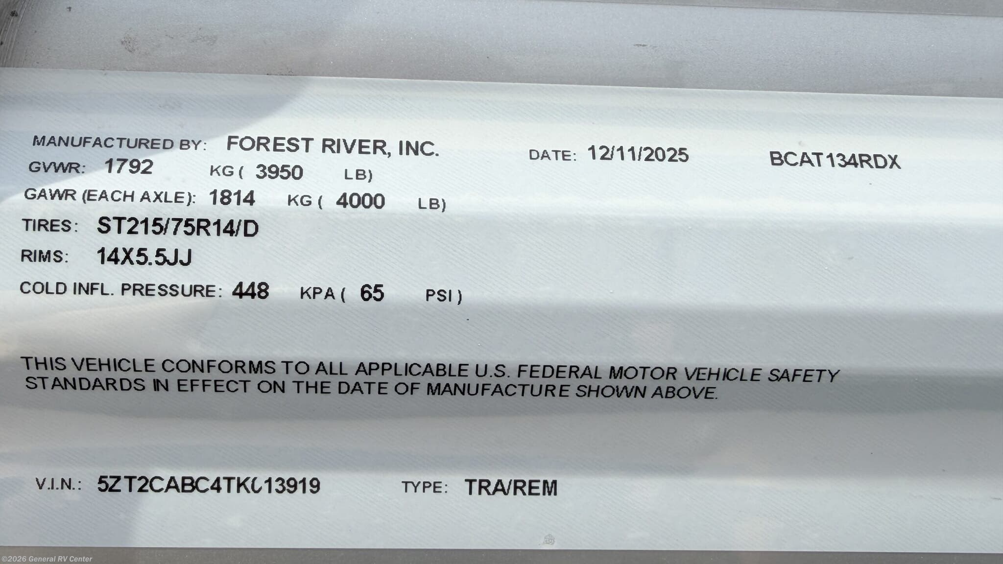 - VIN5ZT2CABC4TK013919