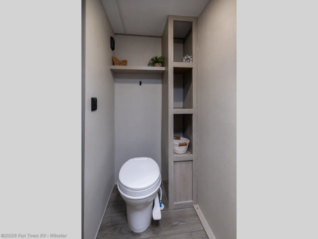 This couple's trailer will be perfect for all your outdoor adventures! There is a queen bed up front with overhead and bedroom storage to keep things tidy. The booth dinette will serve as a great place to enjoy your morning coffee plus there is a pantry and overhead storage in the kitchen for all your goods. A full rear bath includes a 36" x 30" shower, a marine toilet with foot flush, plus a linen closet to keep clean towels close by. This model also includes full kitchen amenities, including a GE two burner cooktop, a GE stainless microwave oven, plus a 3.3 cu. ft. 12V refrigerator to keep food fresh!