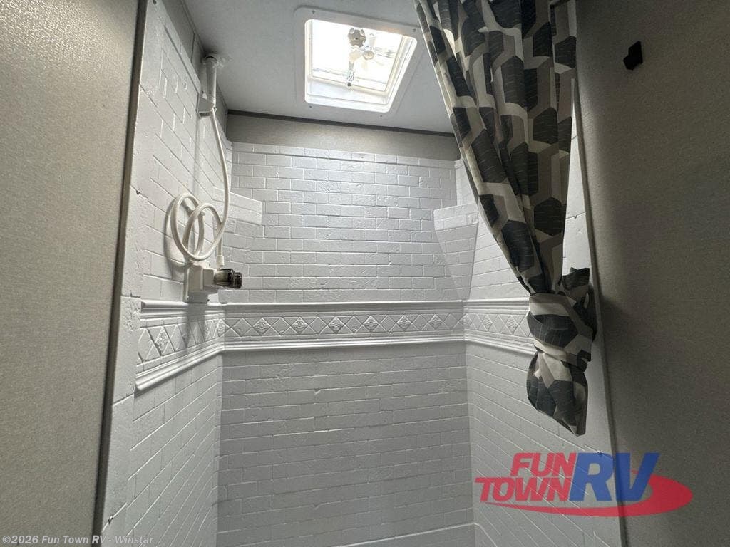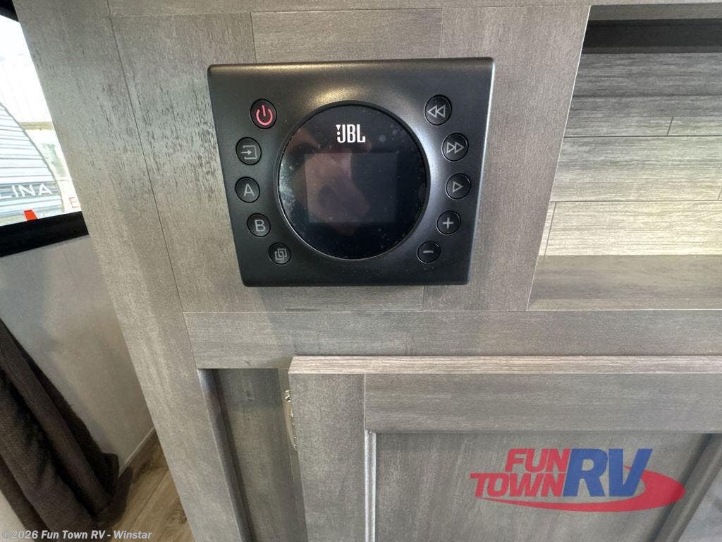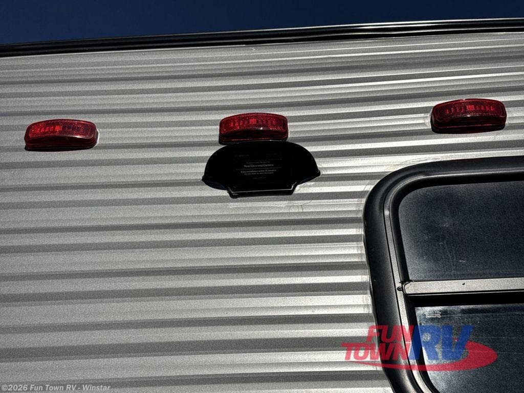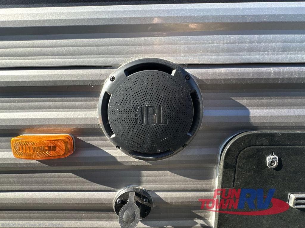 This is the perfect mid-size travel trailer for you and your family! The 46" x 74" double-size bunk beds with lower interior storage offer a comfortable sleeping space for the kids and you will have your own private sleeping space with the 60" x 74" queen bed in the front bedroom. Freshen up each morning in the rear corner bathroom with the tub/shower and a mirror to get ready each morning. You can prepare your best home cooked meals with the GE stainless three burner cooktop and GE stainless 10.7 cu. ft. 12V refrigerator, then enjoy them together at the booth dinette. The sofa is near the entertainment center for a relaxing movie night. Don't leave any of your outdoor gear behind either, thanks to the front pass-through storage area and the exterior outside storage area. You could even add the optional outside camper kitchen to grill the catch of the day on the pull out griddle!