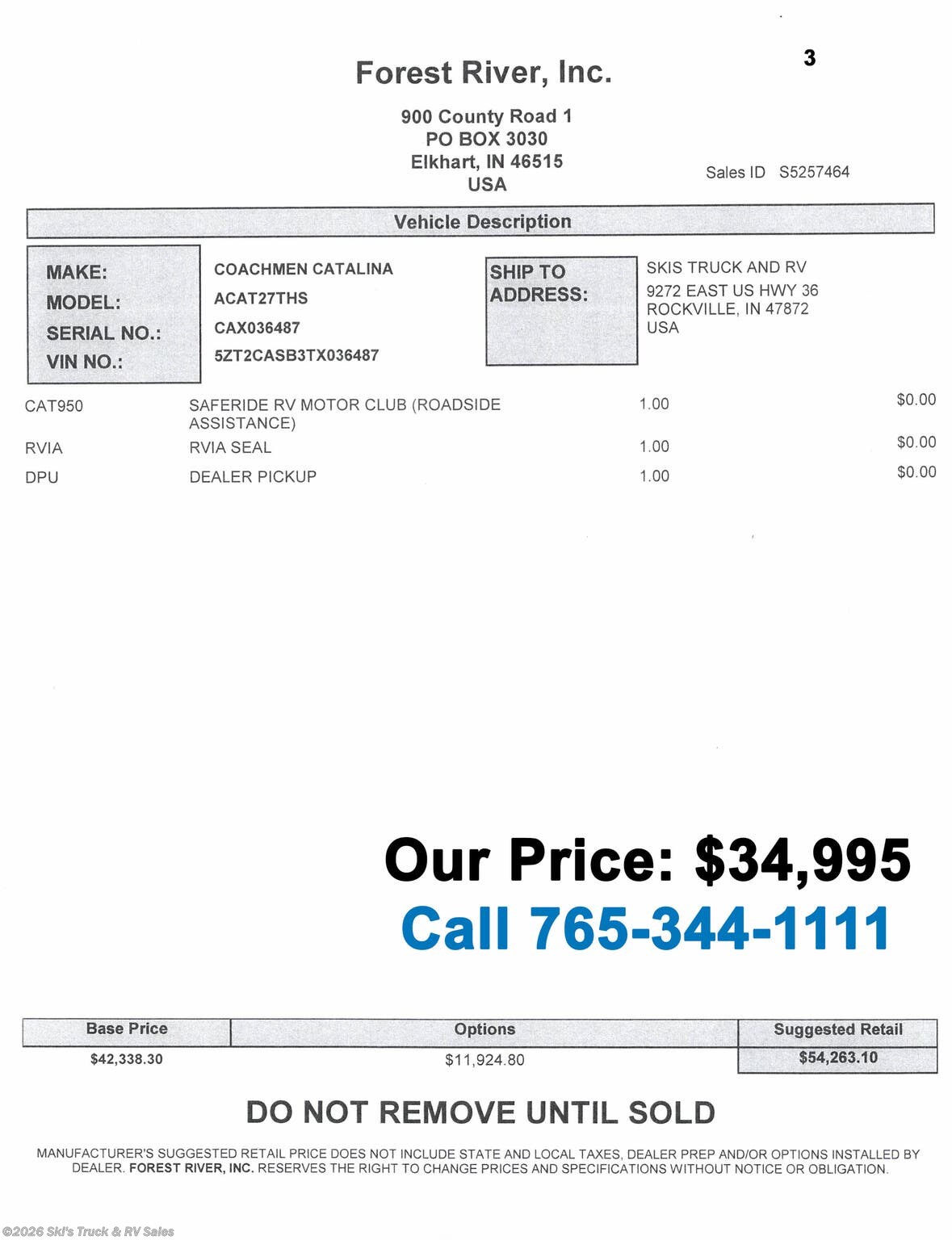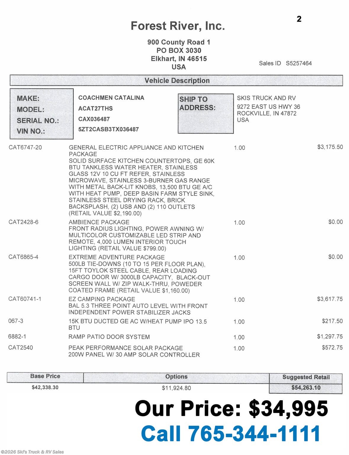 Request More Info on this 2026 Coachmen Catalina Trail Blazer 27THS Offered for sale by Ski's Truck & RV Sales