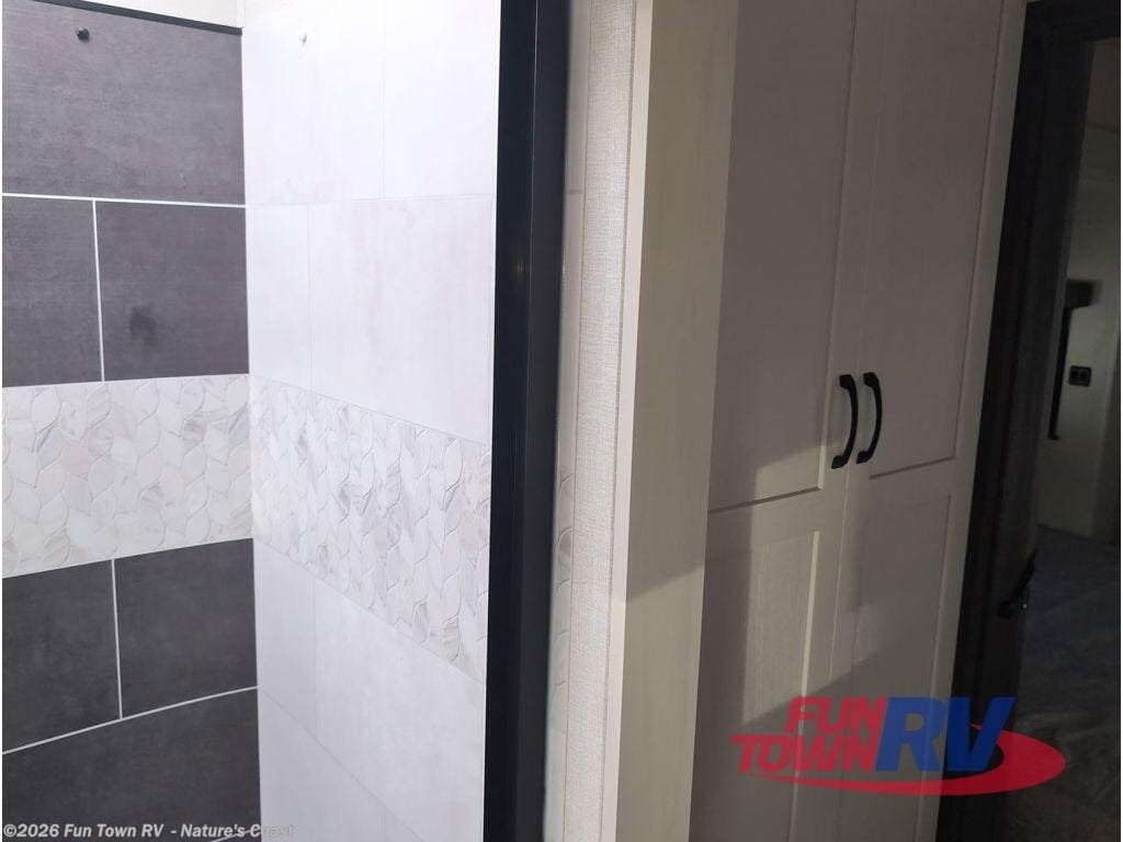 Camping or full-timing in this spacious fifth wheel will make the whole family happy. Your crew will love to visit in the front living area that included two tri-fold hide-a-bed sofas, theatre seating with a side table, plus an entertainment center for a 50" 4K Smart LED TV. The kitchen is any chef's dream with its kitchen island, large pantry, plus a hutch to store nice dishes, and stainless steel appliances. And the free-spanning table will allow you to dine just like you do at home. Head to the master suite to find a king bed slide out, two dressers, plus a full rear bath with dual bath sinks!