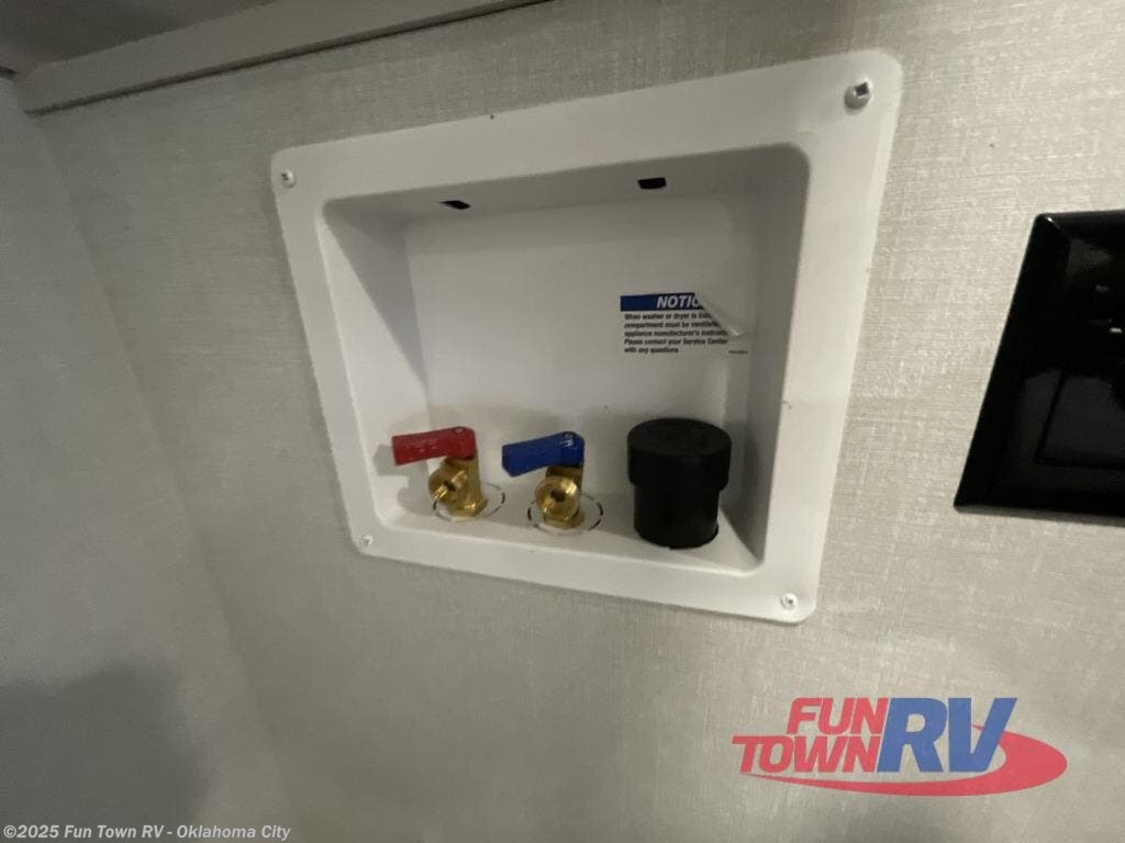 What could be better than a camping trip with family and friends? A camping trip in this spacious fifth wheel that can sleep eight people comfortably! There is a private middle bunkhouse with double-size bunks and overhead cabinets to store belongings, and a front private bedroom with a queen bed slide out. You'll find storage space in the large bedroom wardrobe that also includes washer and dryer prep if you plan to go full-time or camp for longer periods of time. Everyone can meet in the main living area that includes dual opposing slides, theatre seating, a free-spanning table, plus a tri-fold hide-a-bed sofa! And we didn't even mention the fully-equipped kitchen with stainless steel appliances, an extra deep single basin sink, plus tons of counter space with overhead cabinets for more storage!
