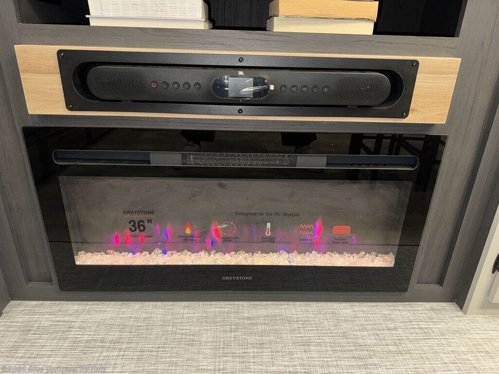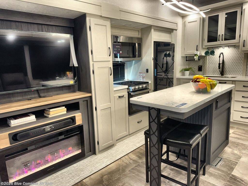 The Tri-Tex™ powder coated frame technology is up to 5X more weather resistant, and the Equa-Flex® suspension with 1/2" thick anodized shackles, bronze bushings, and greasable Zerk® fittings will make towing easier than ever. There is also a Solar Source +™ package with an upgraded 200W roof-mounted solar panel, along with an upgraded lithium-ready converter and 30AMP charge controller by Rich Solar® to support off-grid capability. To top it off, the 6X™ Double Azdel® aluminum cage sidewall system helps deliver a strong, vacuum-bonded build, while the upgraded Carbon & Walnut entertainment center with JBL® soundbar adds a premium touch. Now that's what I call luxury! Choose a Chaparral fifth wheel today!
