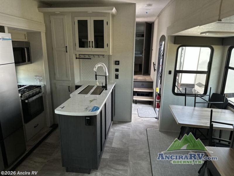 Each Chaparral mid-profile fifth wheel by Coachmen is designed with residential features, loads of storage space, and roomy bedroom suites to make you feel right at home. The durable construction means you can enjoy your RV for years to come. There's 6X double Azdel aluminum cage sidewall system, Weather Shield+ technology, and Tri-Tex powder coated frame technology that will help extend your camping season. Each model includes a Winegard Air 360+ HDTV/radio dome antenna to help keep you connected as you camp, slow rise blackout roller night shades, a new 16 cu. ft. side-by-side stainless glass 12V refrigerator, and a modern electric fireplace to make your space cozy. There is also a large transom window in the kitchen, a modern high-rise faucet, LED motion sensor lights in the bathroom, plus a full-size shower with glass doors and a seat. Now that's what I call luxury! Choose a Chaparral fifth wheel today!