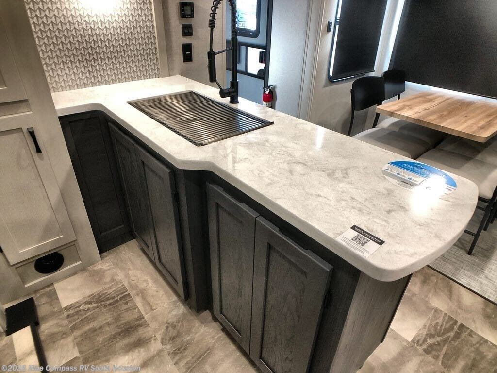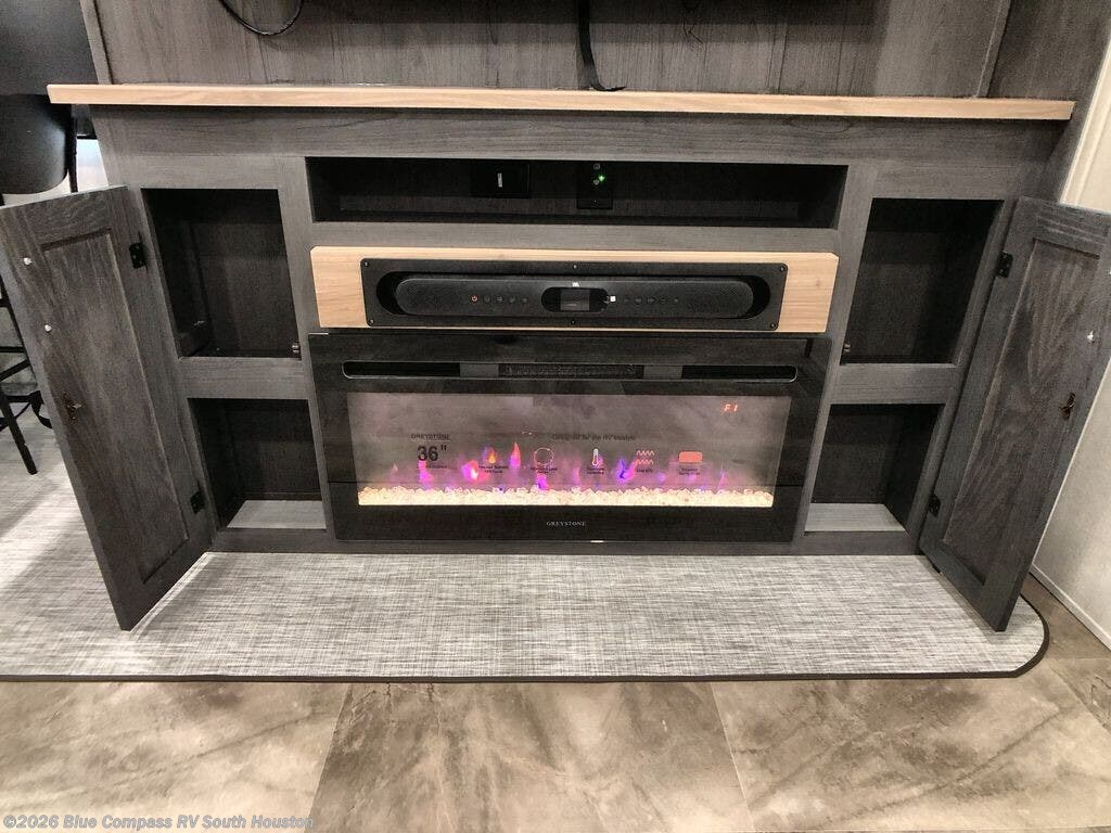 The Tri-Tex™ powder coated frame technology is up to 5X more weather resistant, and the Equa-Flex® suspension with 1/2" thick anodized shackles, bronze bushings, and greasable Zerk® fittings will make towing easier than ever. There is also a Solar Source +™ package with an upgraded 200W roof-mounted solar panel, along with an upgraded lithium-ready converter and 30AMP charge controller by Rich Solar® to support off-grid capability. To top it off, the 6X™ Double Azdel® aluminum cage sidewall system helps deliver a strong, vacuum-bonded build, while the upgraded Carbon & Walnut entertainment center with JBL® soundbar adds a premium touch. Now that's what I call luxury! Choose a Chaparral fifth wheel today!