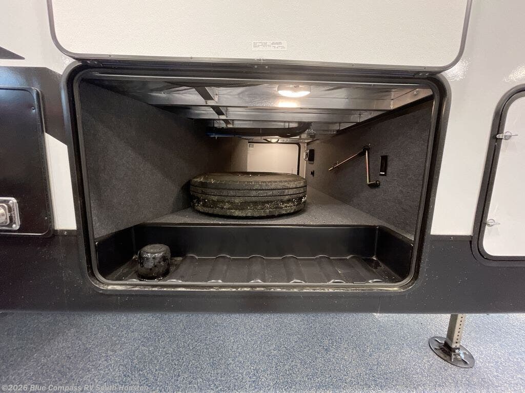 The Tri-Tex™ powder coated frame technology is up to 5X more weather resistant, and the Equa-Flex® suspension with 1/2" thick anodized shackles, bronze bushings, and greasable Zerk® fittings will make towing easier than ever. There is also a Solar Source +™ package with an upgraded 200W roof-mounted solar panel, along with an upgraded lithium-ready converter and 30AMP charge controller by Rich Solar® to support off-grid capability. To top it off, the 6X™ Double Azdel® aluminum cage sidewall system helps deliver a strong, vacuum-bonded build, while the upgraded Carbon & Walnut entertainment center with JBL® soundbar adds a premium touch. Now that's what I call luxury! Choose a Chaparral fifth wheel today!